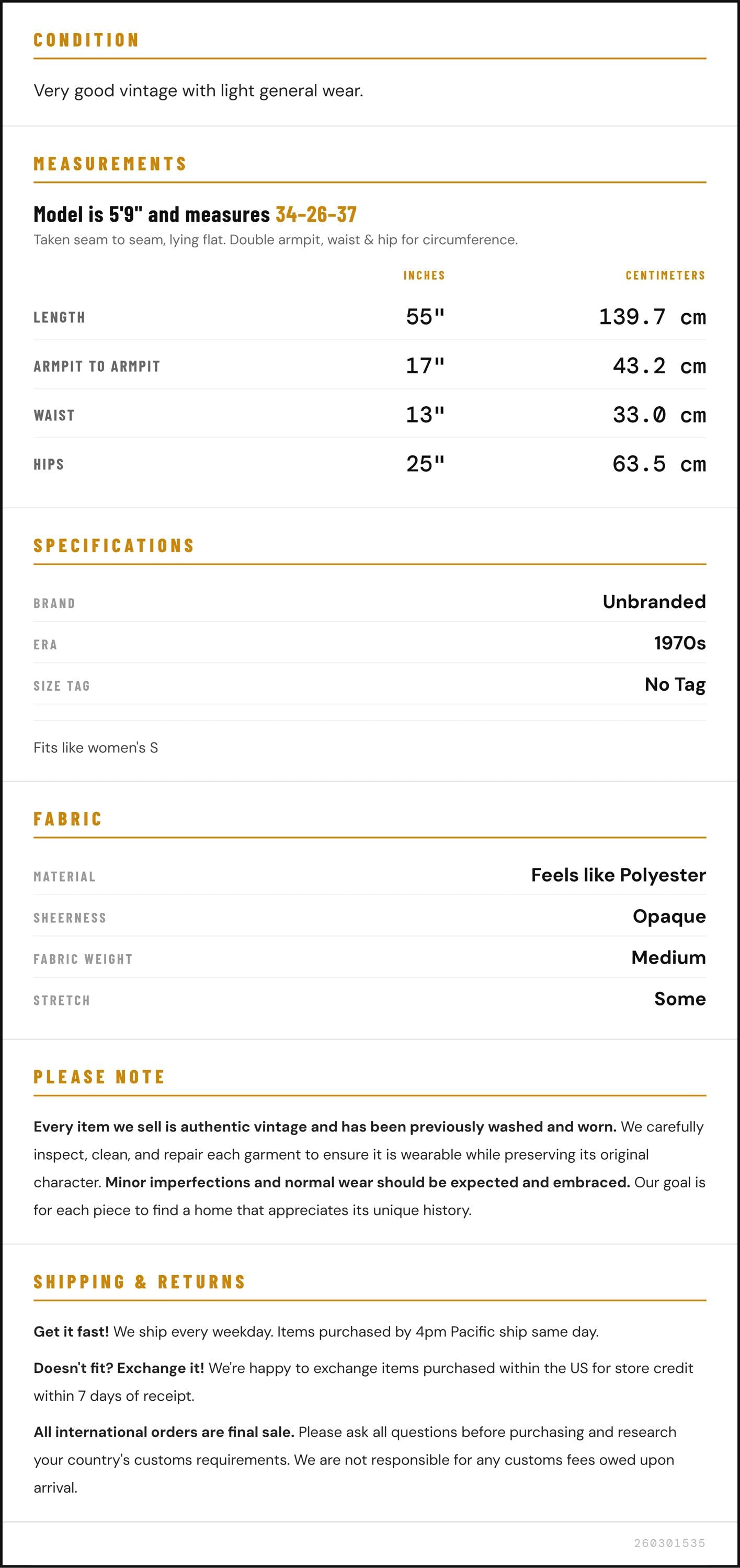✨ Please see measurements and condition below. Every garment we sell is authentic vintage and one-of-a-kind! You will receive the exact item photographed.