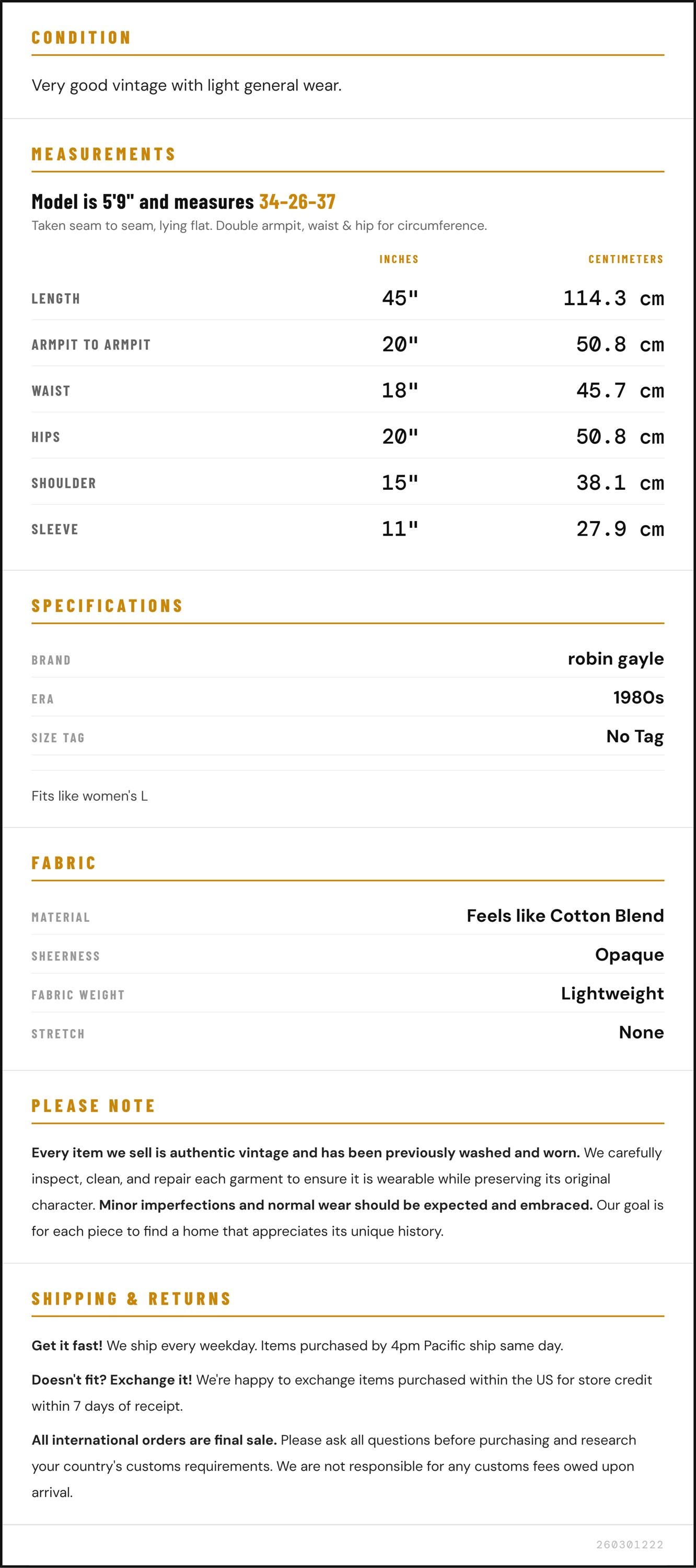 ✨ Please see measurements and condition below. Every garment we sell is authentic vintage and one-of-a-kind! You will receive the exact item photographed.