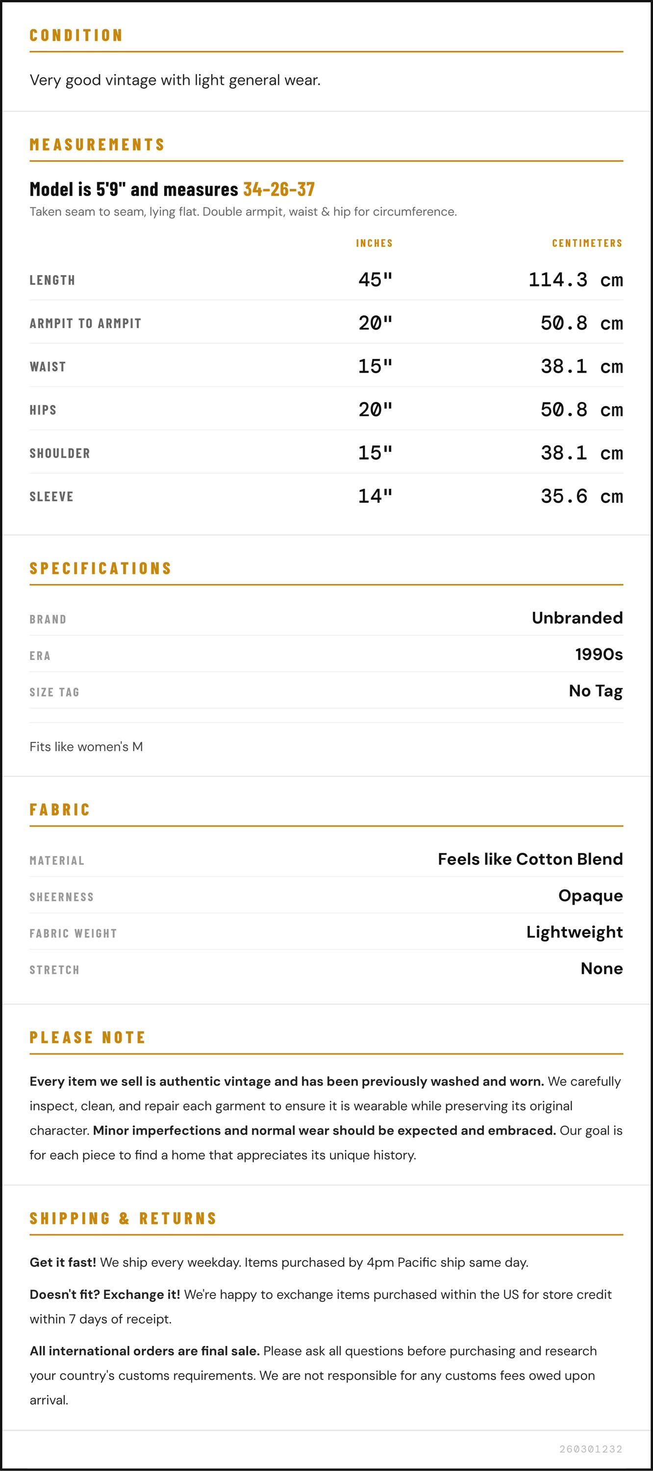 ✨ Please see measurements and condition below. Every garment we sell is authentic vintage and one-of-a-kind! You will receive the exact item photographed.