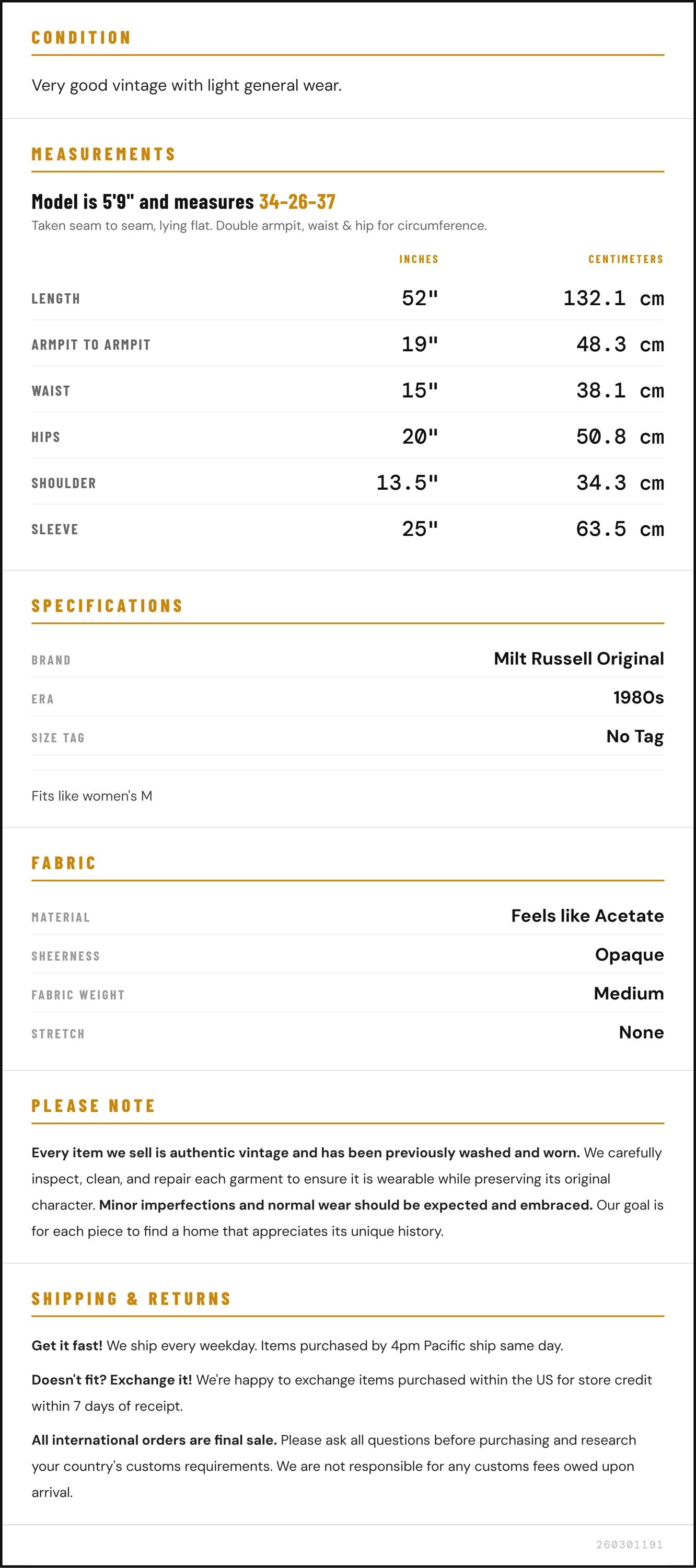 ✨ Please see measurements and condition below. Every garment we sell is authentic vintage and one-of-a-kind! You will receive the exact item photographed.
