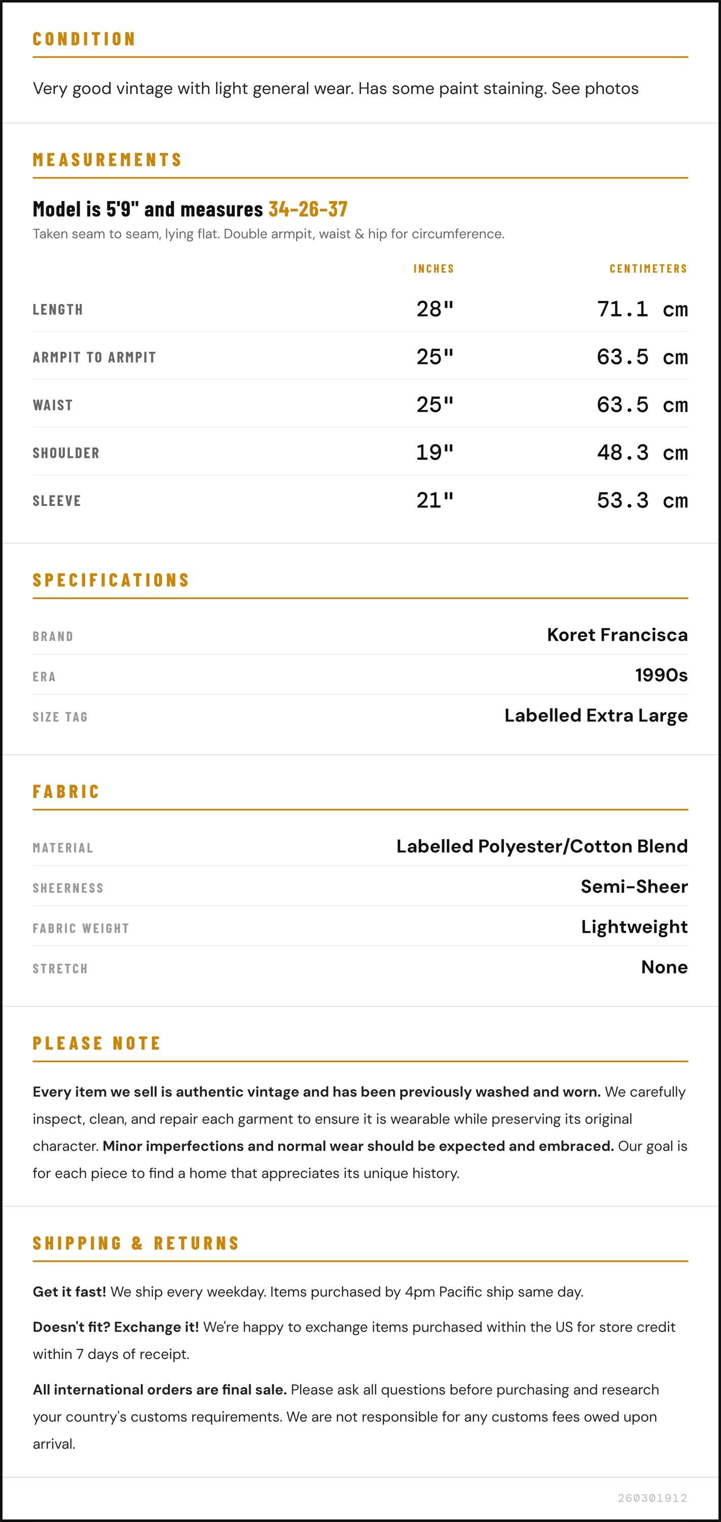 ✨ Please see measurements and condition below. Every garment we sell is authentic vintage and one-of-a-kind! You will receive the exact item photographed.