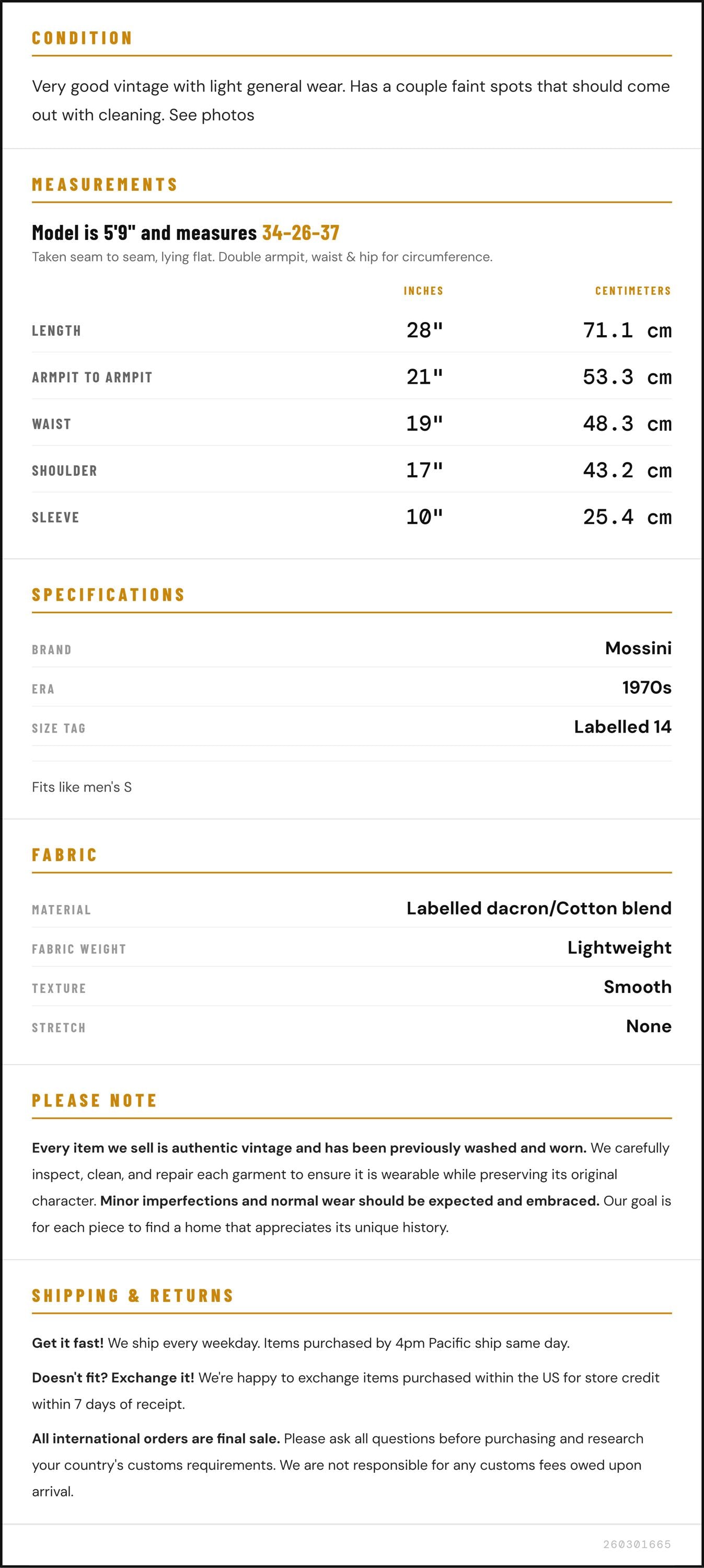 ✨ Please see measurements and condition below. Every garment we sell is authentic vintage and one-of-a-kind! You will receive the exact item photographed.