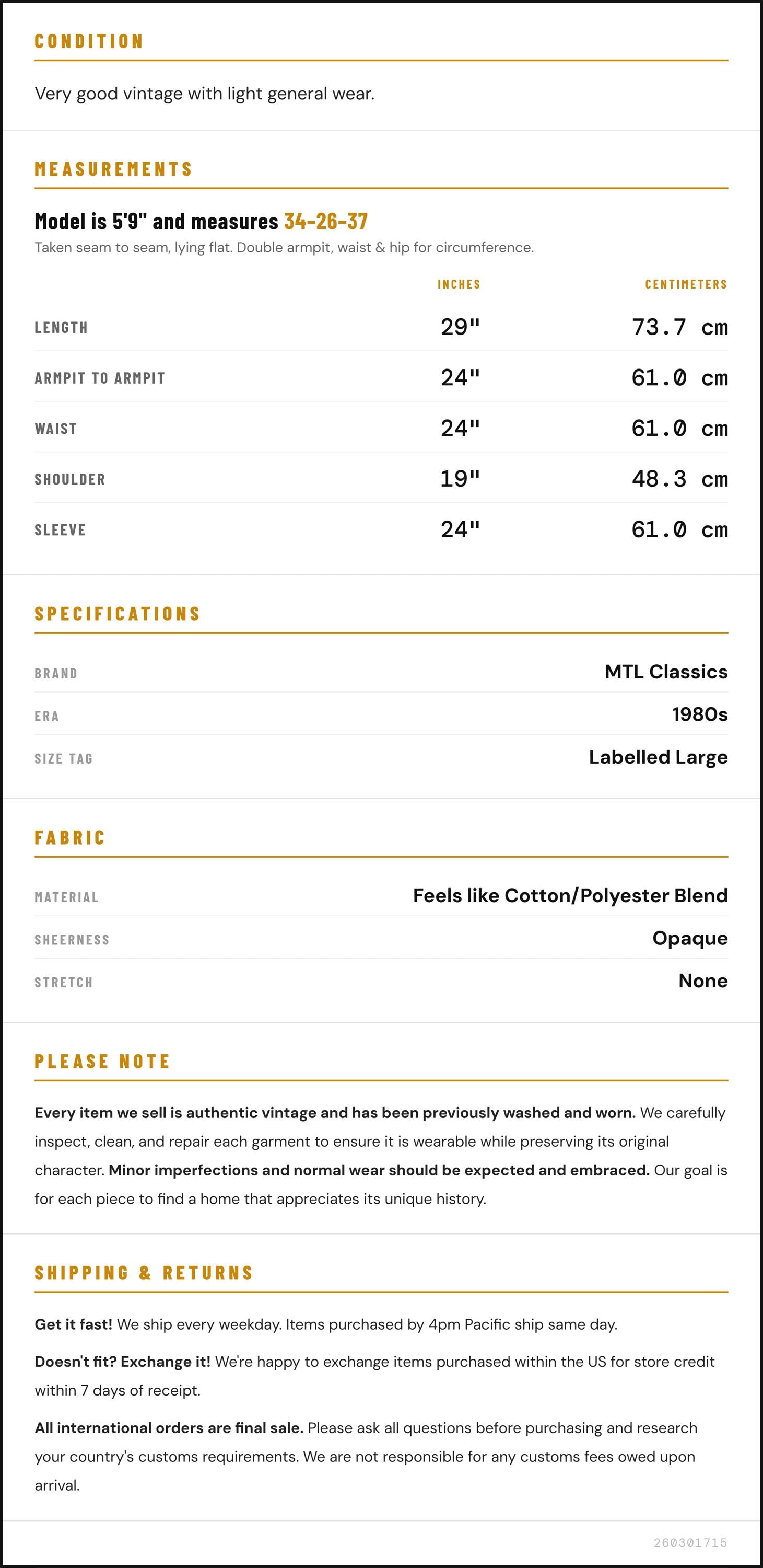✨ Please see measurements and condition below. Every garment we sell is authentic vintage and one-of-a-kind! You will receive the exact item photographed.