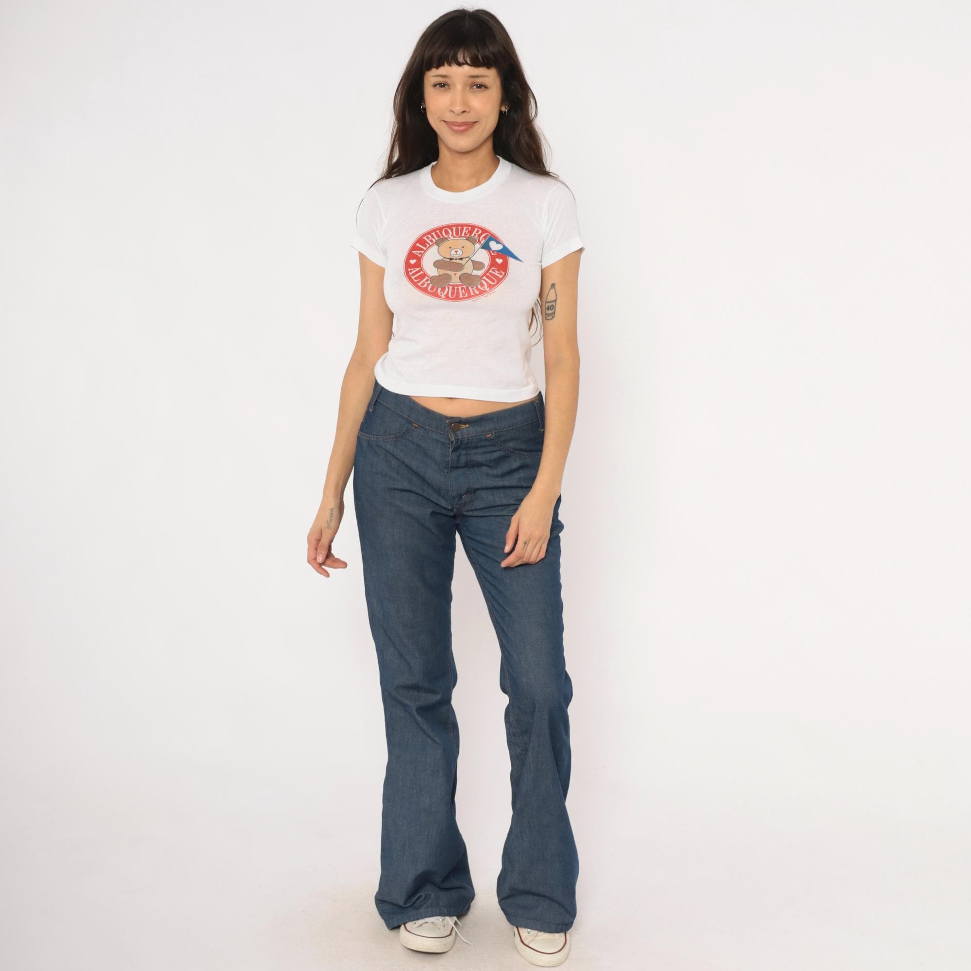 Vintage denim was usually made without any stretch, unlike modern jeans. Check the measurements to ensure proper fit, and remember to give yourself a little wiggle room in the waist and hips, depending on your preferred fit.