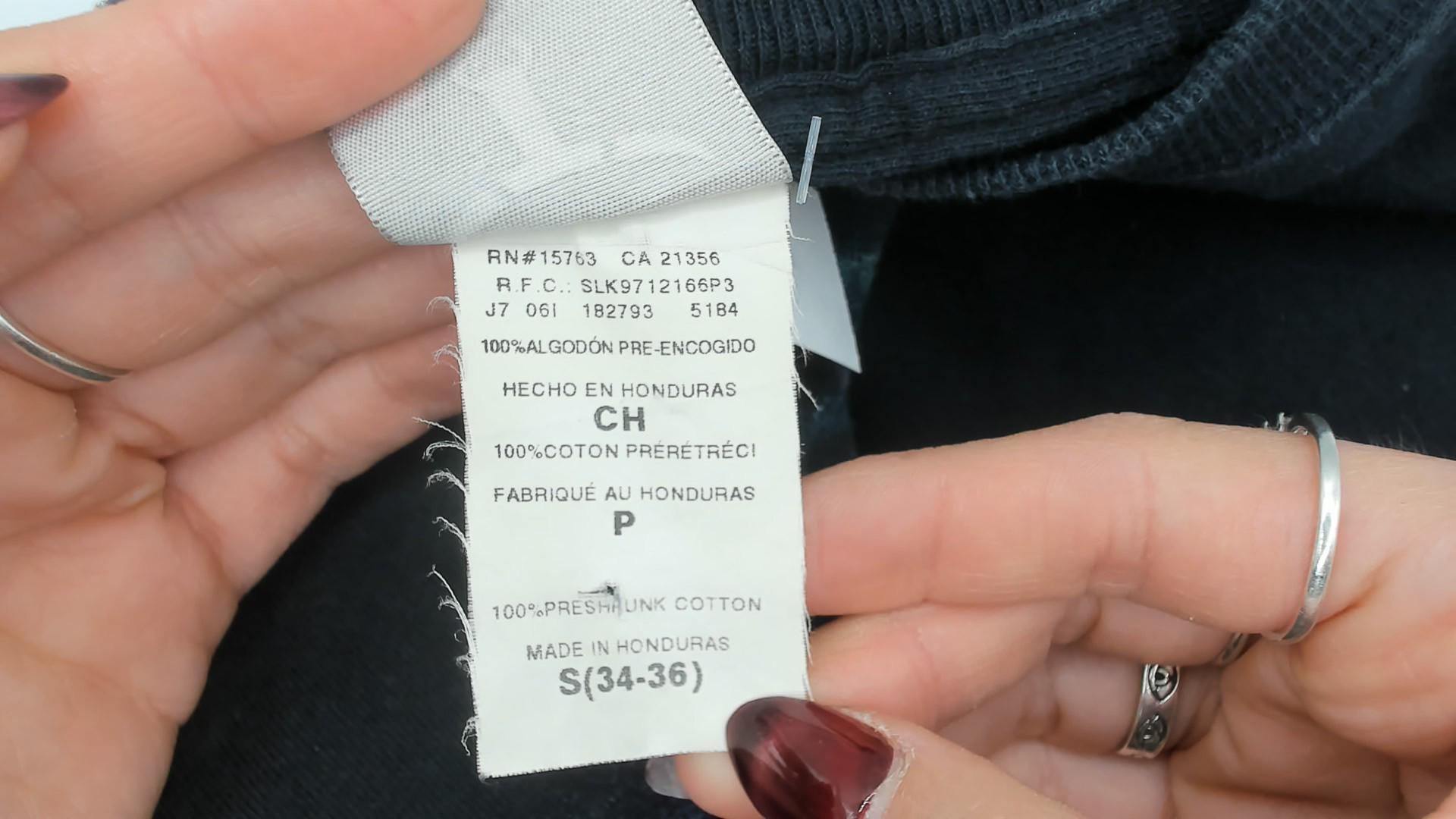Size Tag: Labelled Small 34 - 36