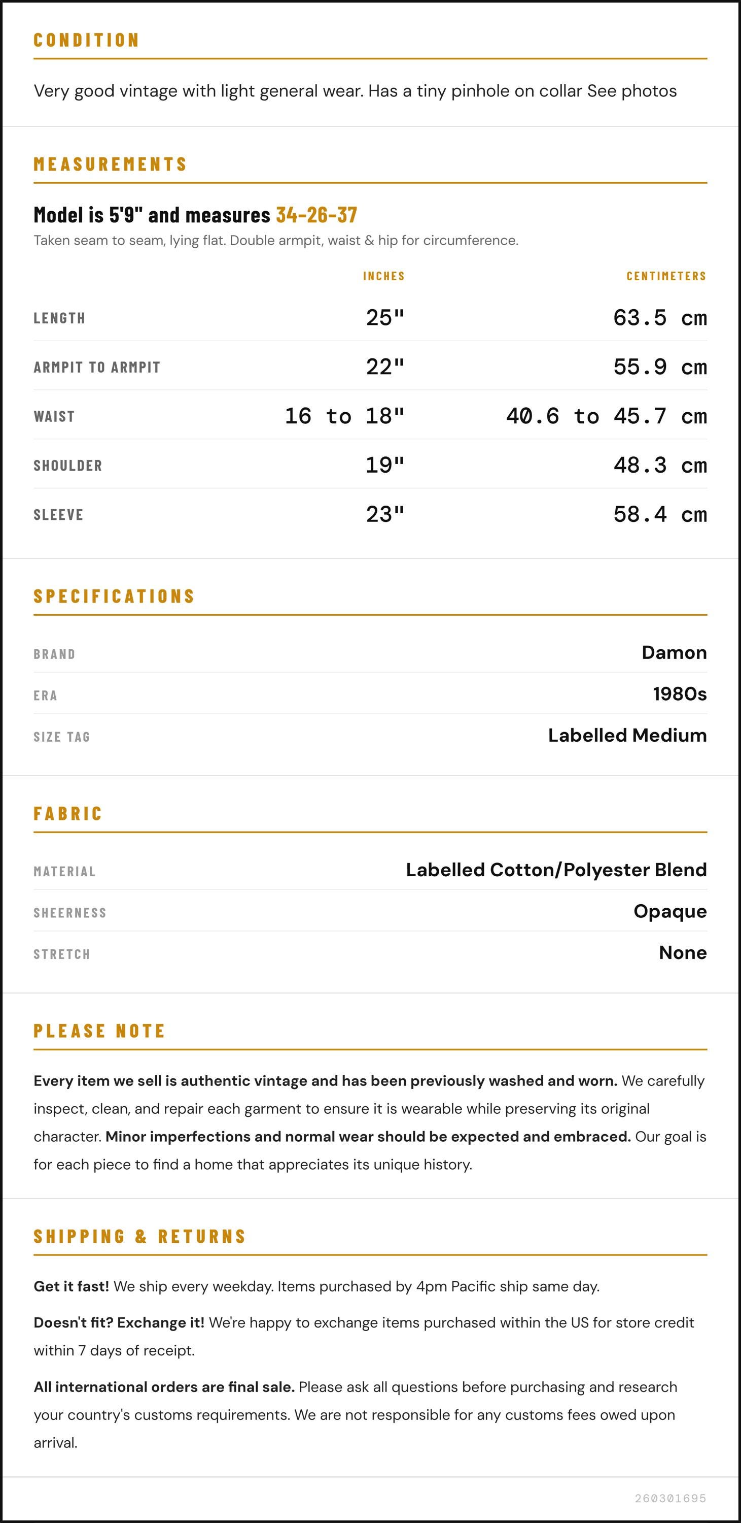 ✨ Please see measurements and condition below. Every garment we sell is authentic vintage and one-of-a-kind! You will receive the exact item photographed.