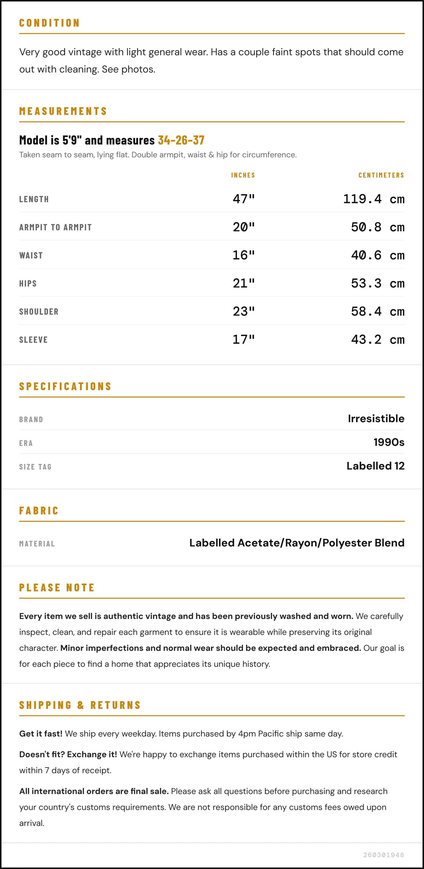 ✨ Please see measurements and condition below. Every garment we sell is authentic vintage and one-of-a-kind! You will receive the exact item photographed.