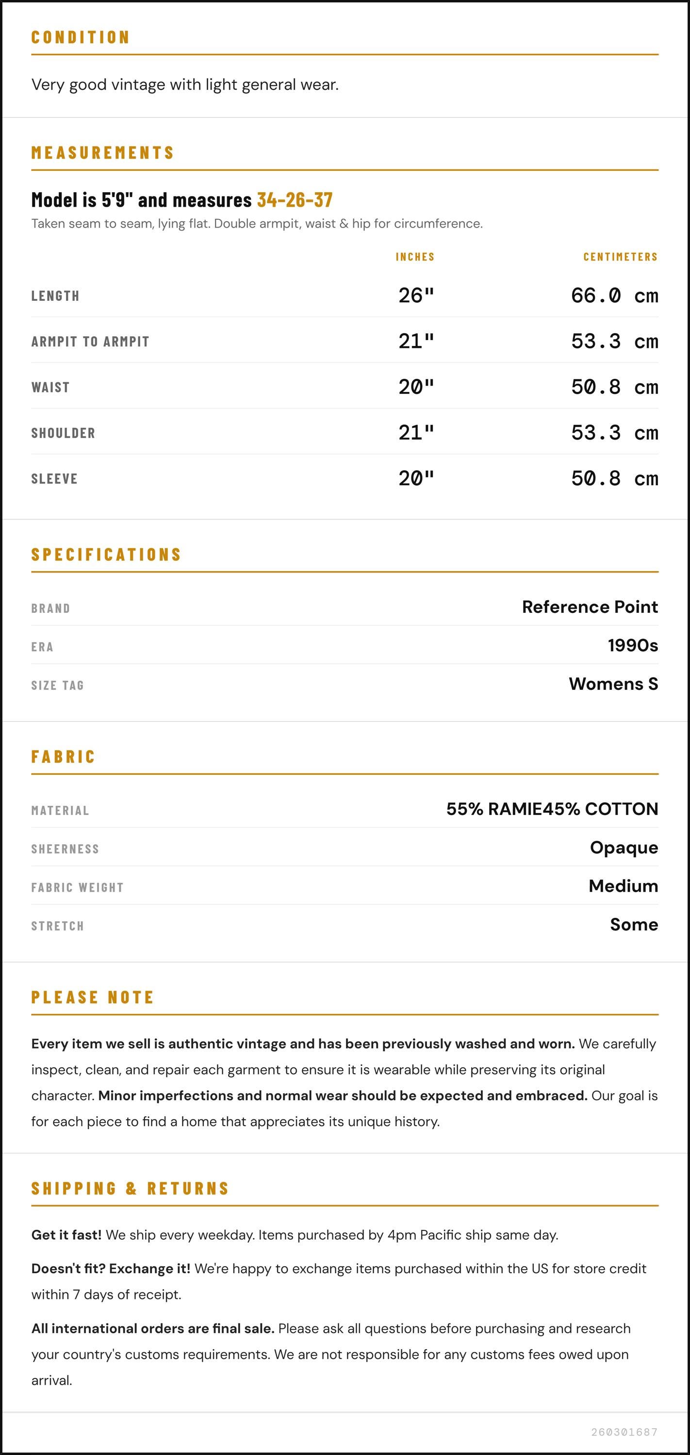 ✨ Please see measurements and condition below. Every garment we sell is authentic vintage and one-of-a-kind! You will receive the exact item photographed.