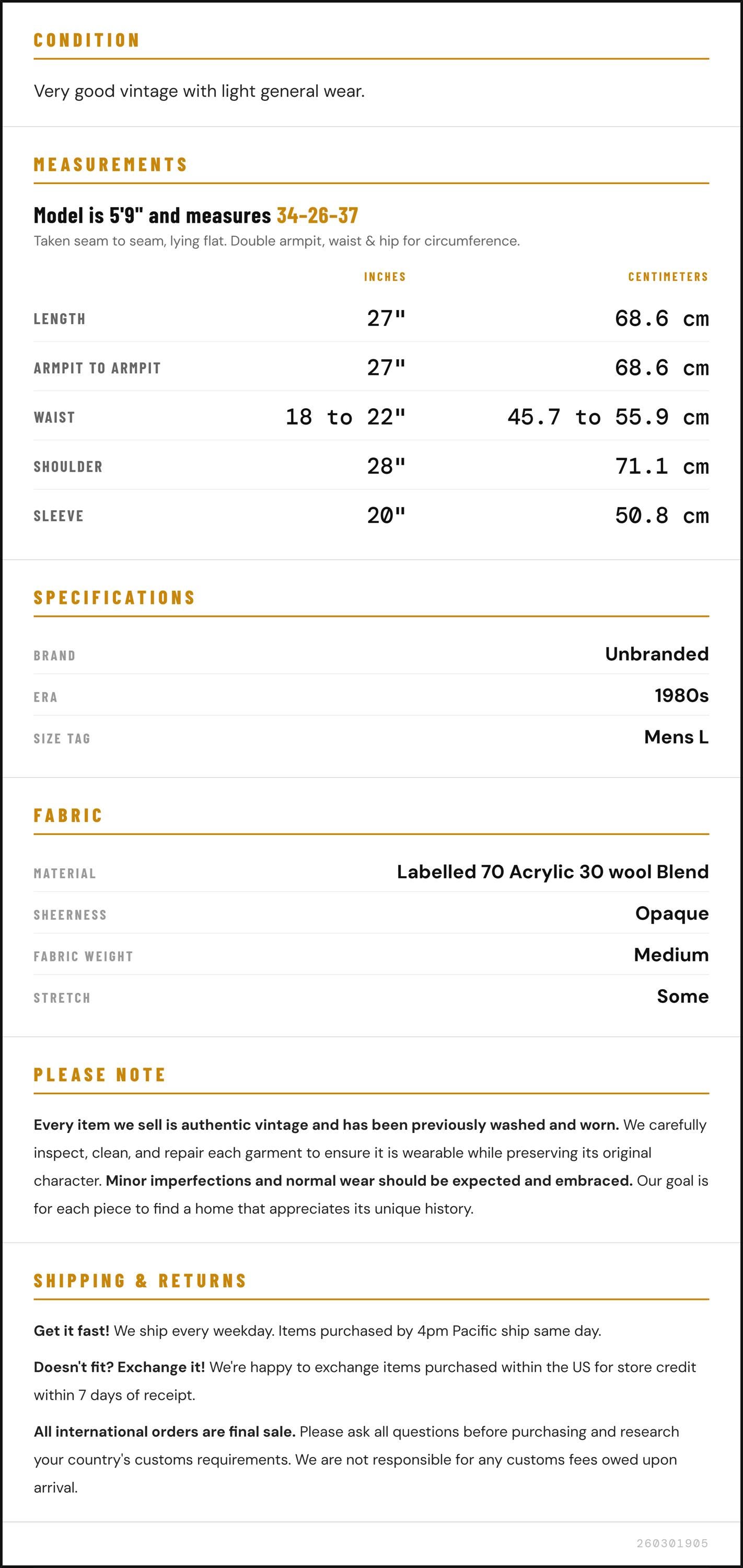 ✨ Please see measurements and condition below. Every garment we sell is authentic vintage and one-of-a-kind! You will receive the exact item photographed.