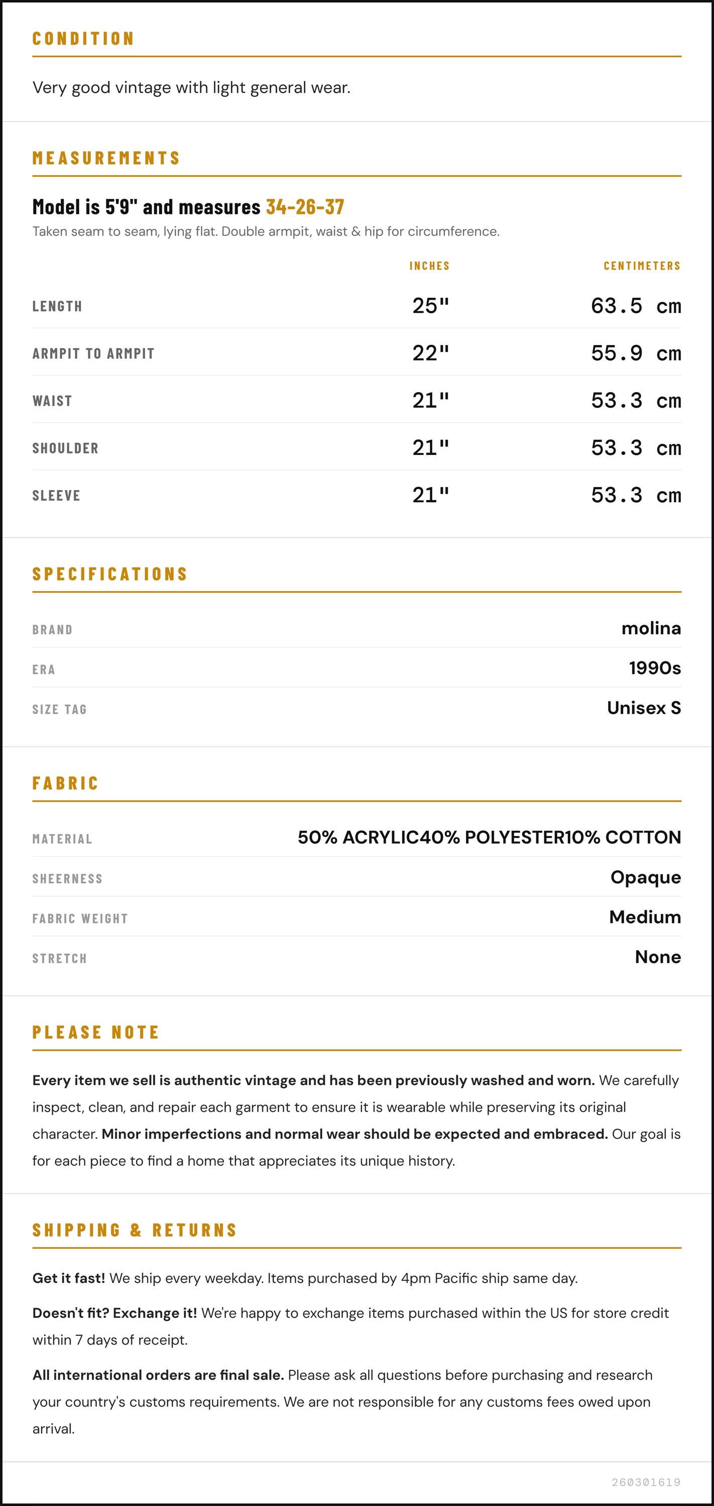 ✨ Please see measurements and condition below. Every garment we sell is authentic vintage and one-of-a-kind! You will receive the exact item photographed.