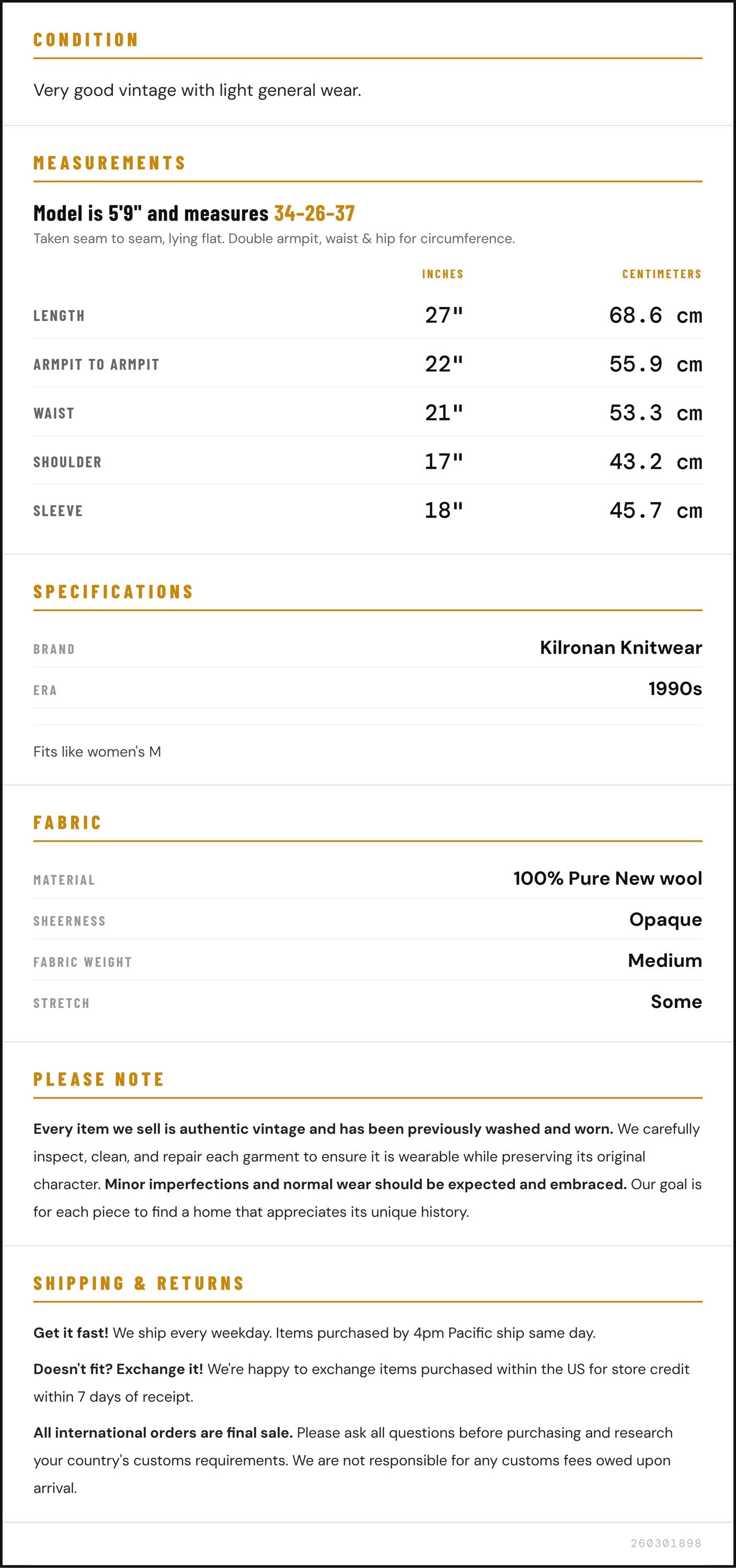 All international orders are final sale. Please ask all questions before purchasing and research your country's customs requirements. We are not responsible for any customs fees owed upon arrival.