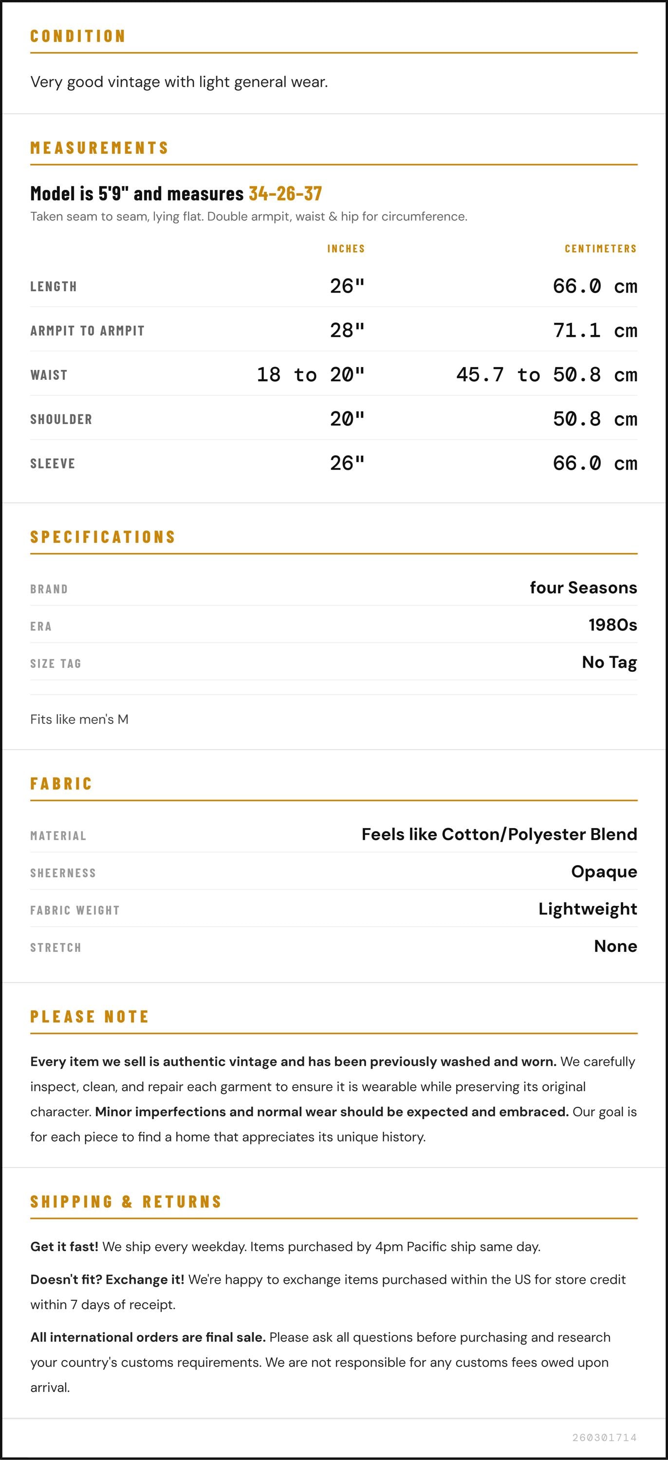 ✨ Please see measurements and condition below. Every garment we sell is authentic vintage and one-of-a-kind! You will receive the exact item photographed.