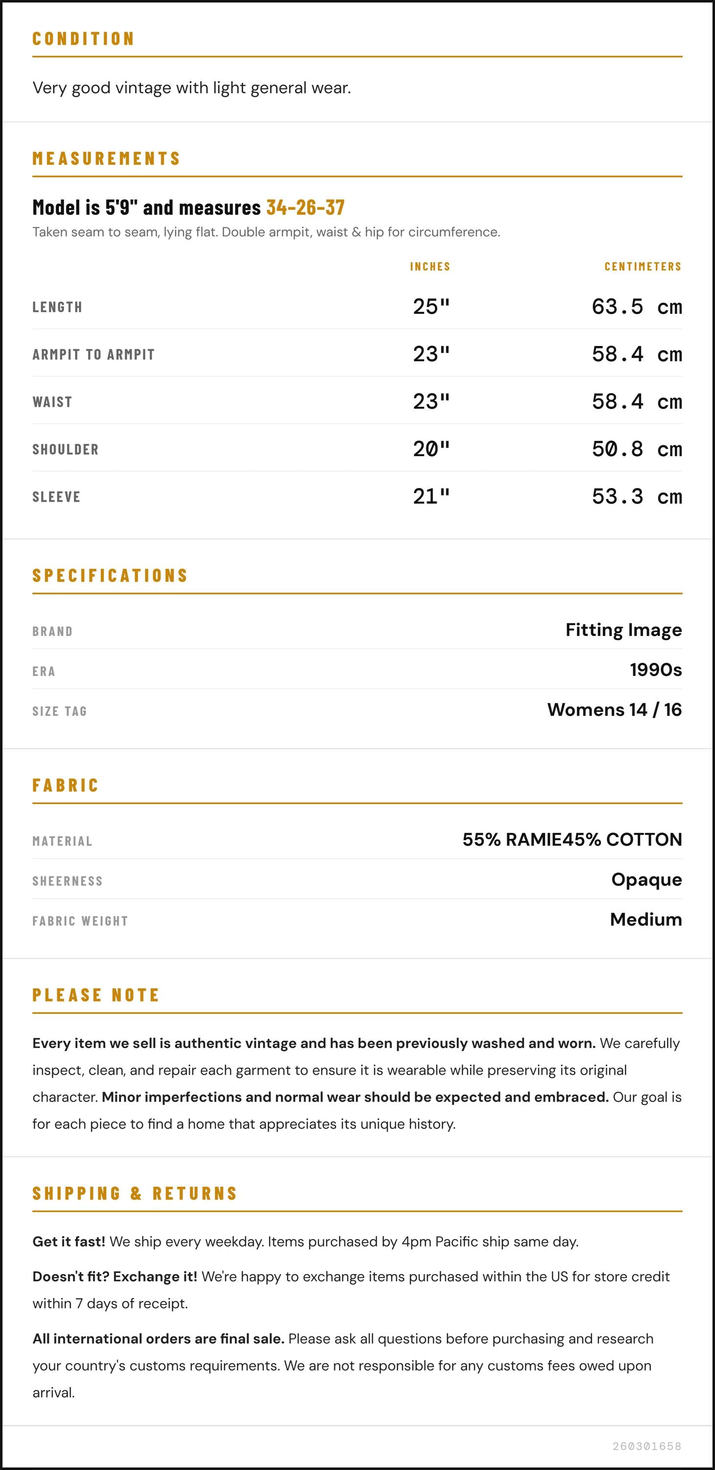 ✨ Please see measurements and condition below. Every garment we sell is authentic vintage and one-of-a-kind! You will receive the exact item photographed.