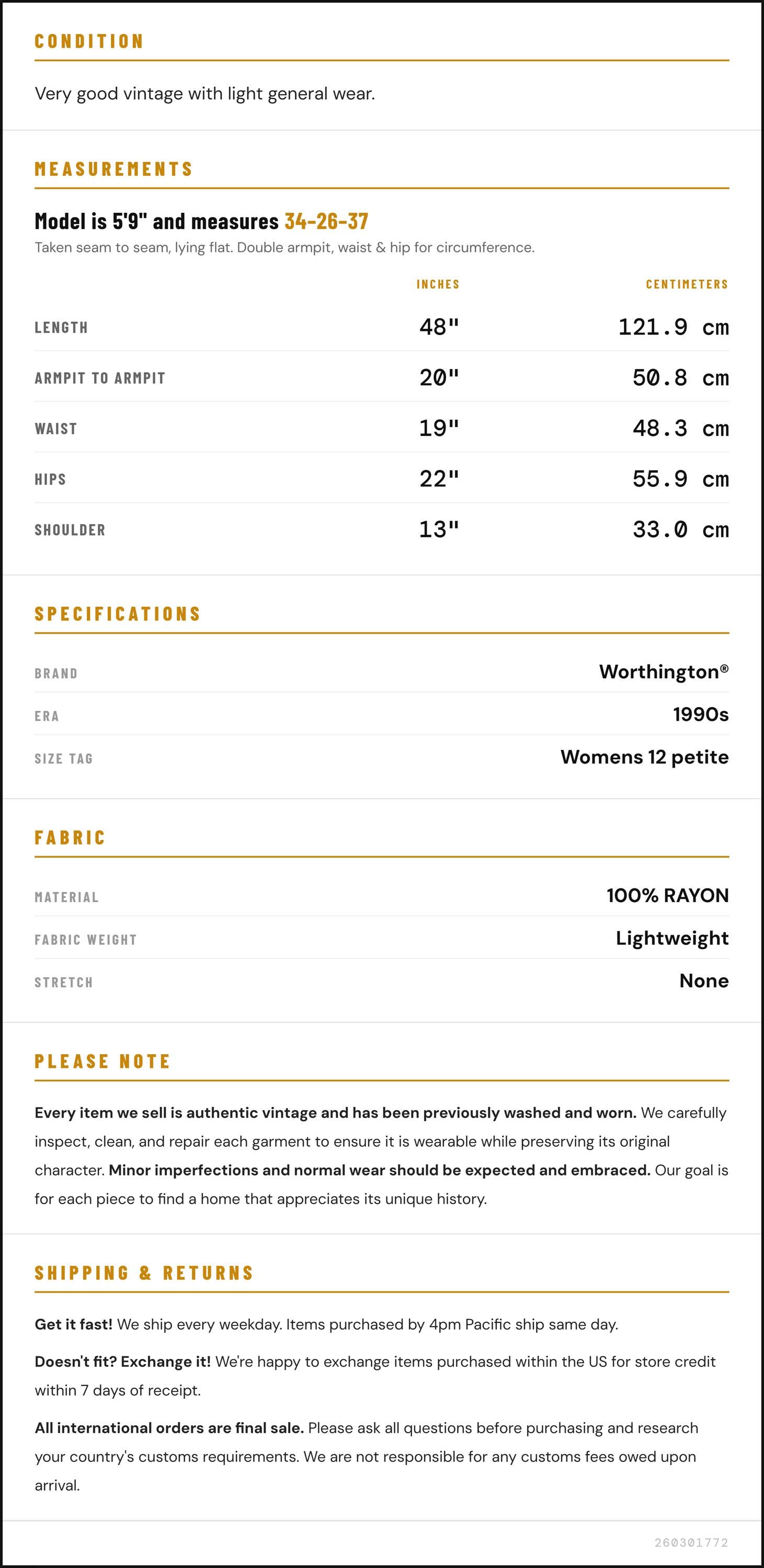 ✨ Please see measurements and condition below. Every garment we sell is authentic vintage and one-of-a-kind! You will receive the exact item photographed.