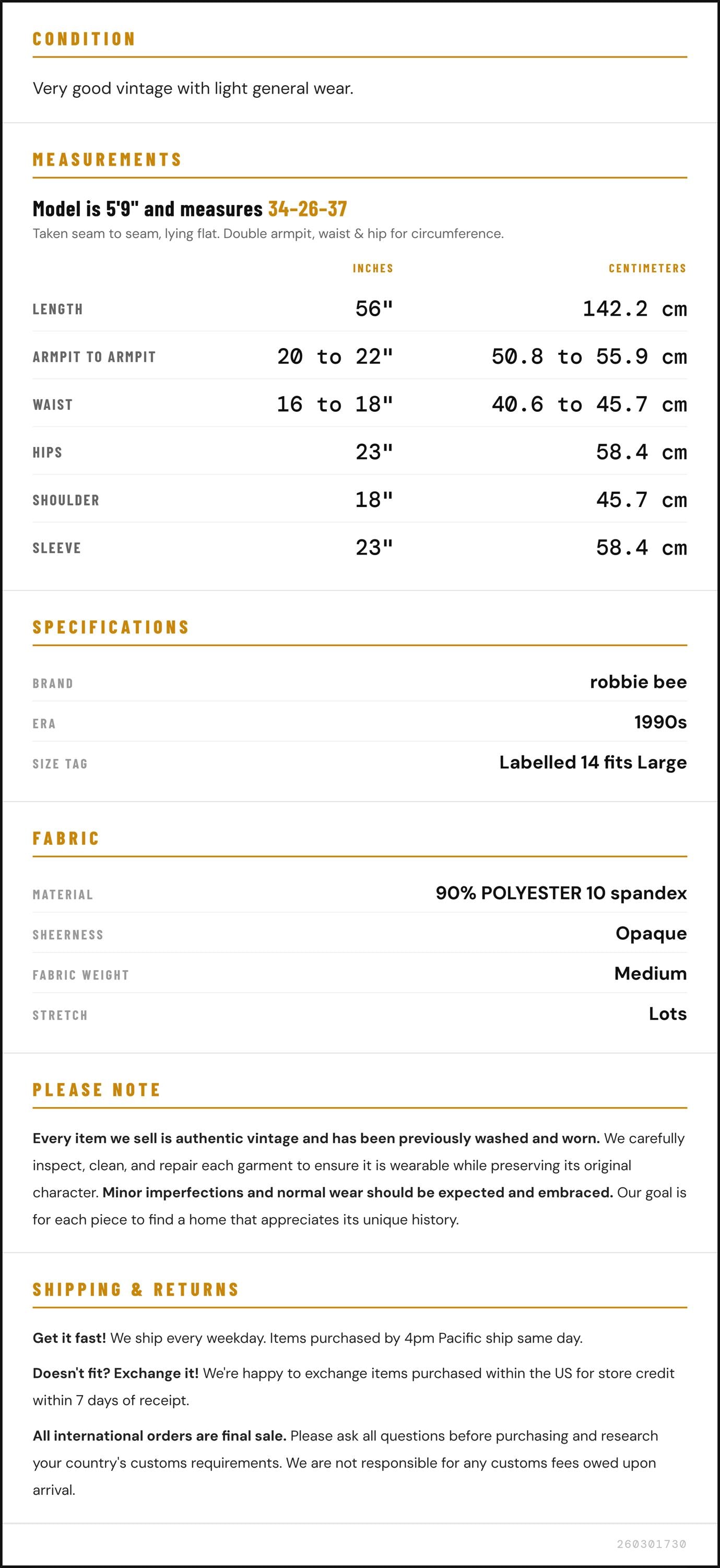 Measurements are taken laying flat and should be doubled where applicable. The "best fits" size is just an estimate, and vintage sizing can vary from modern sizing. Please use measurements to ensure proper fit. The best thing to do is measure a similar item of your own, and compare. When an item has stretch, we will list the unstretched dimensions with the stretched measurement afterwards.