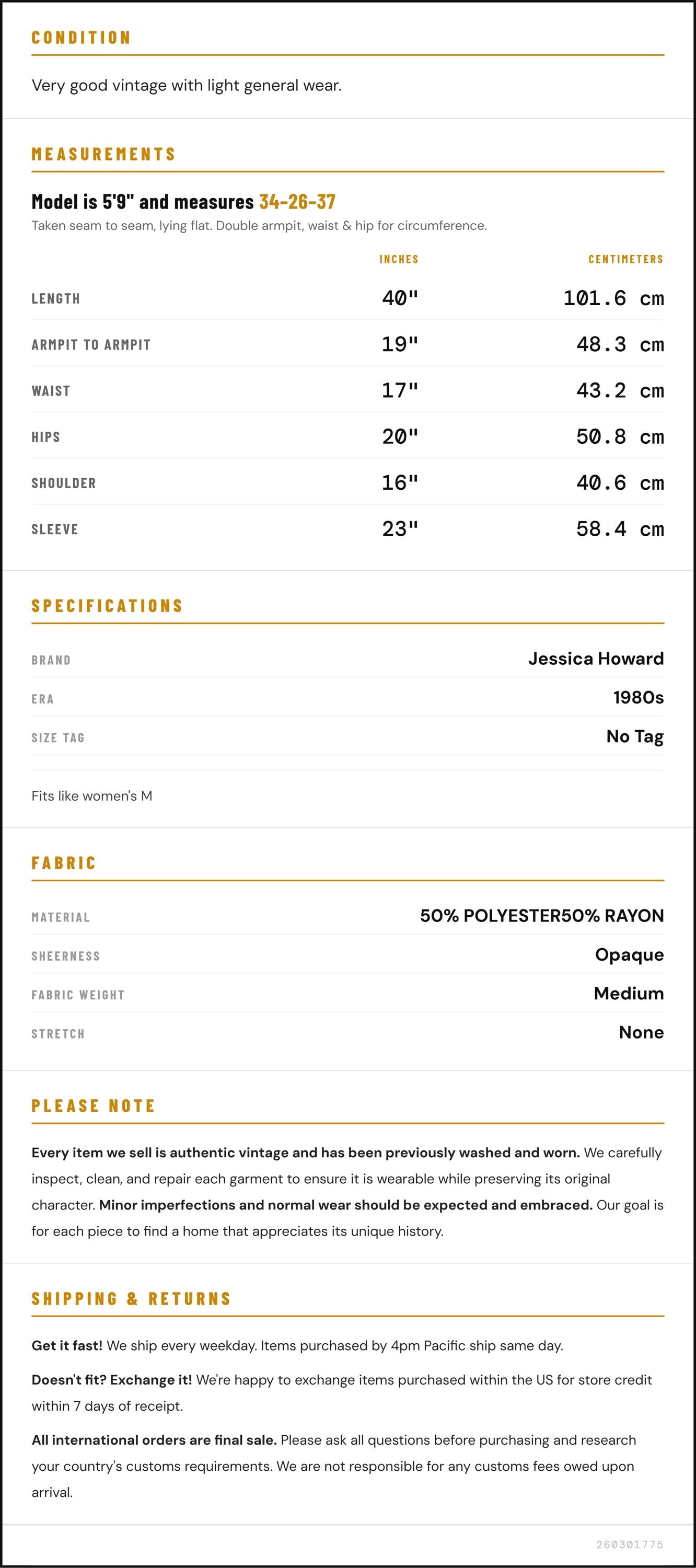 ✨ Please see measurements and condition below. Every garment we sell is authentic vintage and one-of-a-kind! You will receive the exact item photographed.