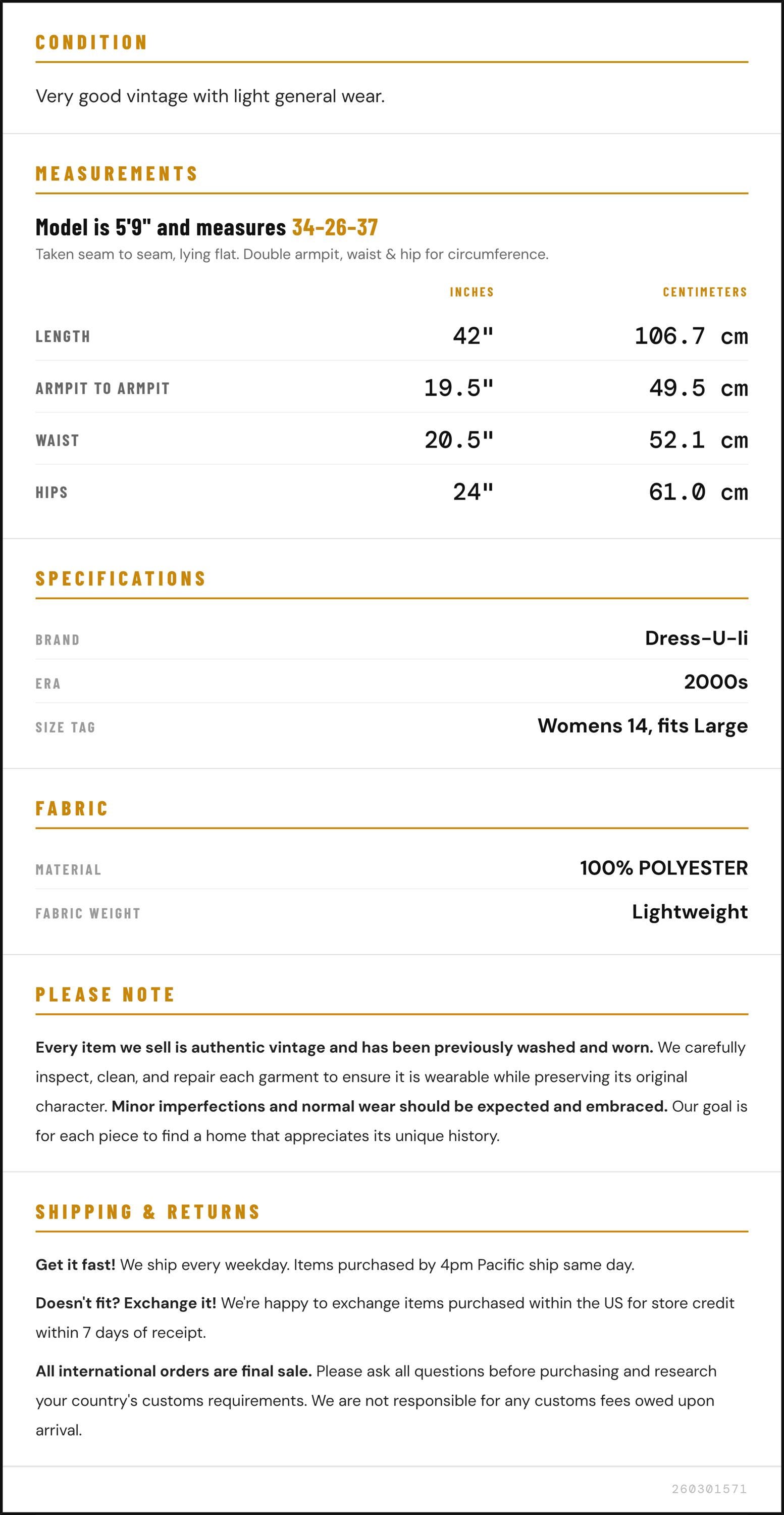 All international orders are final sale. Please ask all questions before purchasing and research your country's customs requirements. We are not responsible for any customs fees owed upon arrival.
