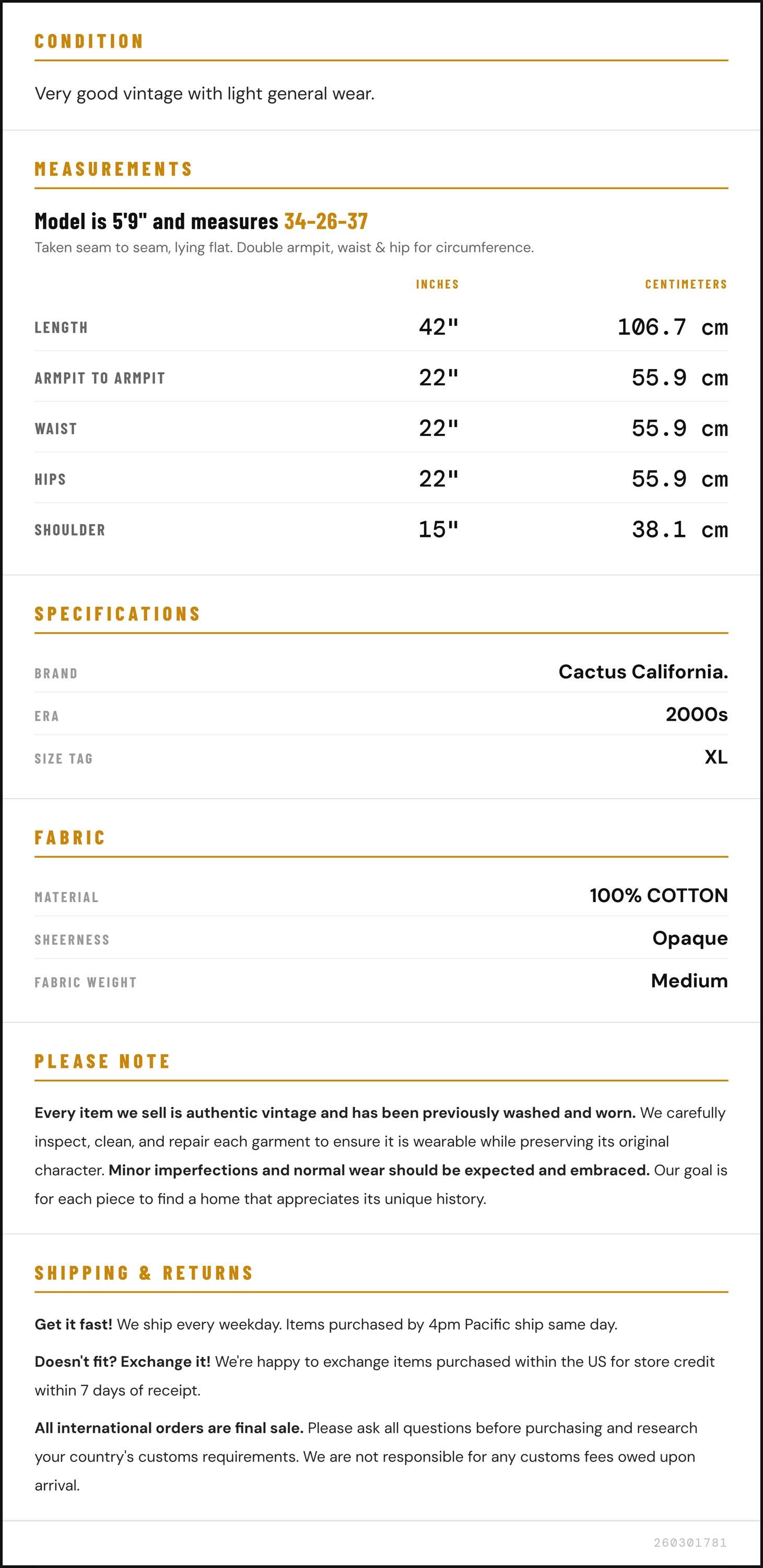 Doesn't fit? Exchange it! We're happy to exchange items purchased within the US for store credit within 7 days of receipt.