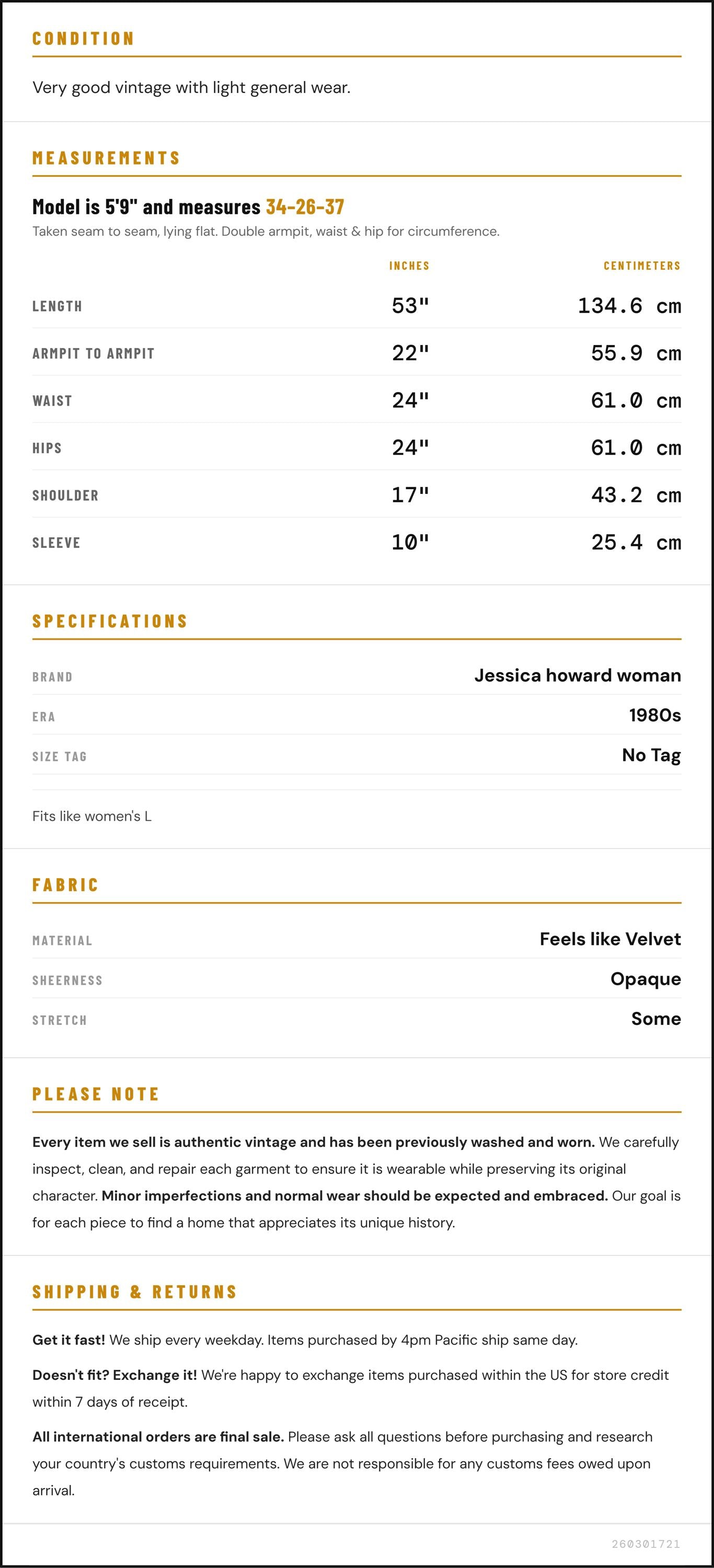 ✨ Please see measurements and condition below. Every garment we sell is authentic vintage and one-of-a-kind! You will receive the exact item photographed.