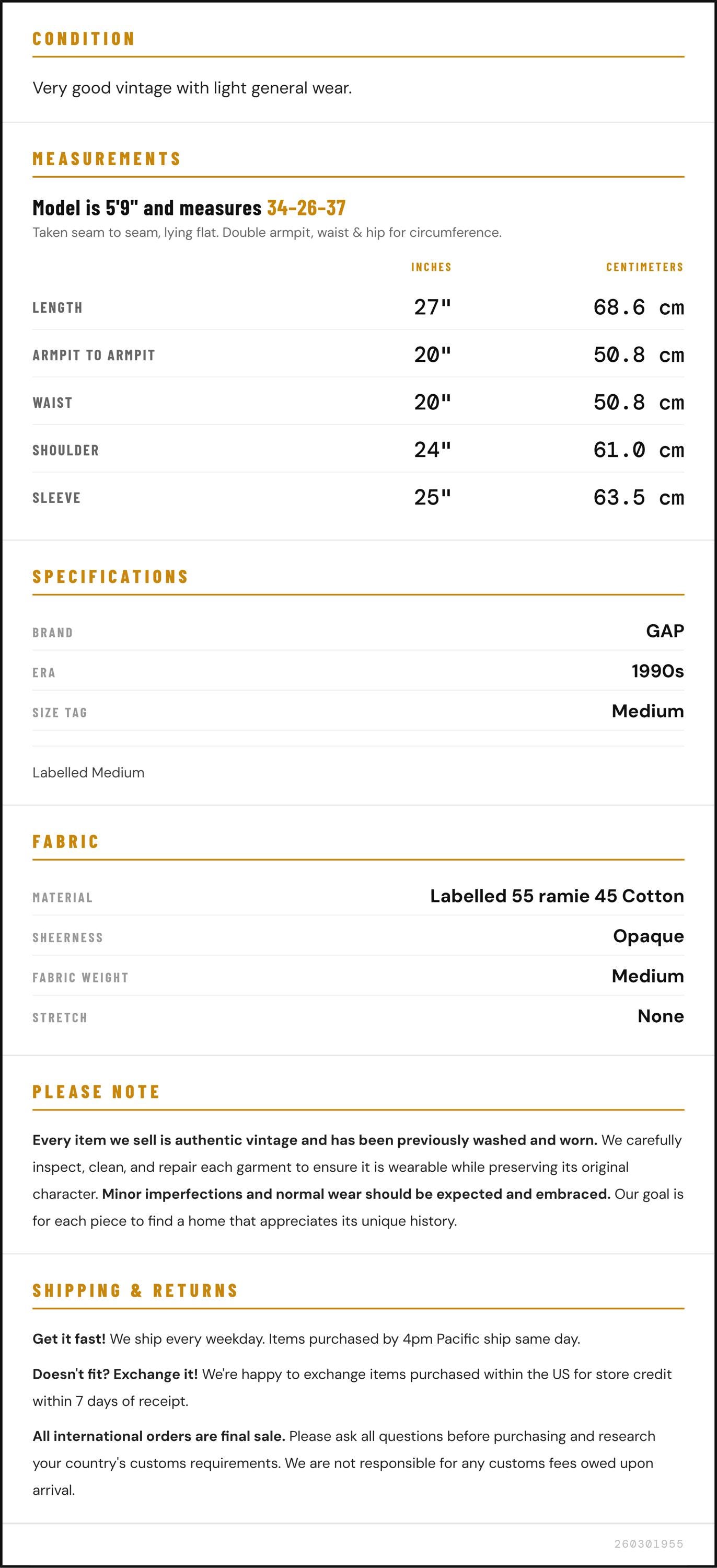 ✨ Please see measurements and condition below. Every garment we sell is authentic vintage and one-of-a-kind! You will receive the exact item photographed.