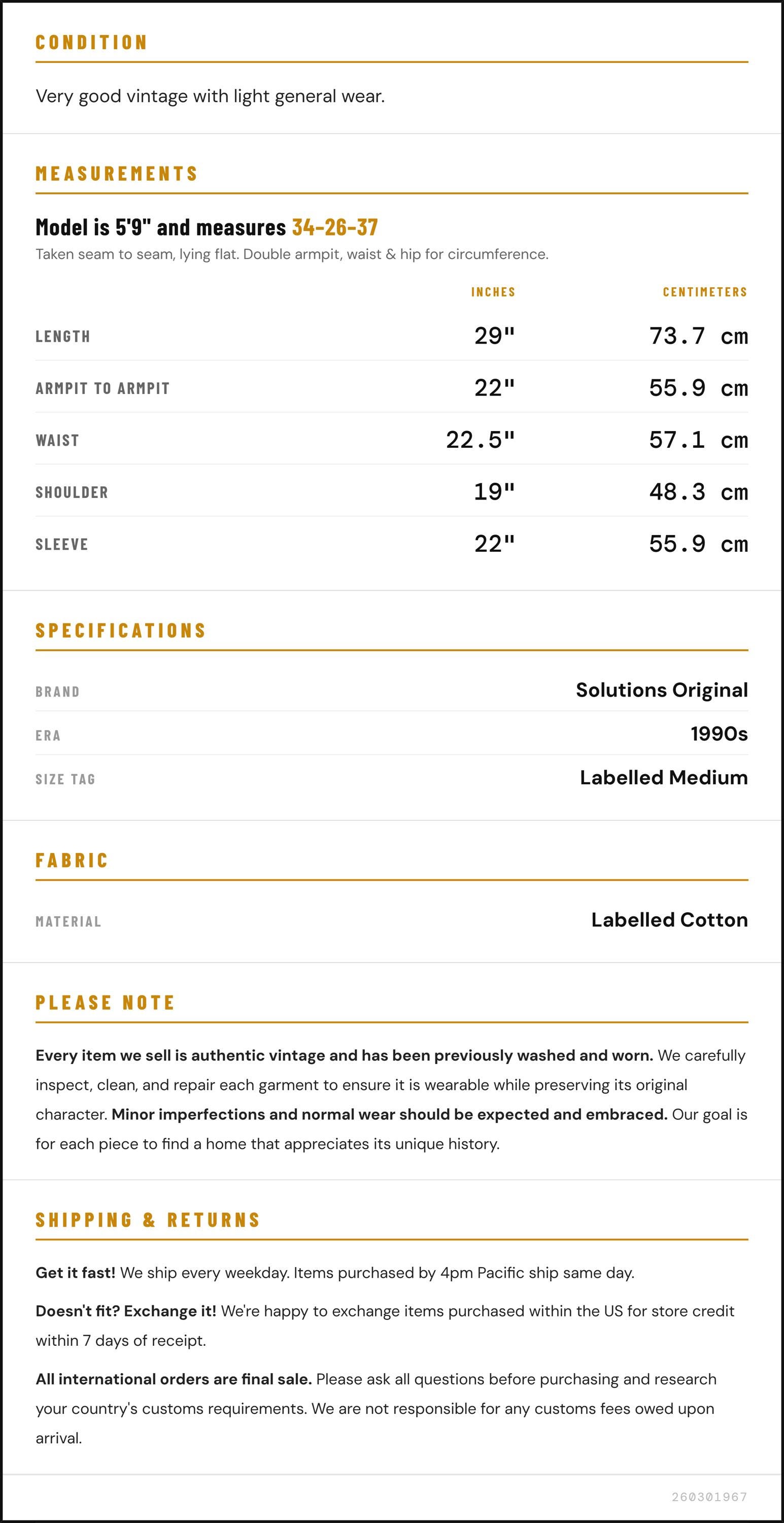 ✨ Please see measurements and condition below. Every garment we sell is authentic vintage and one-of-a-kind! You will receive the exact item photographed.