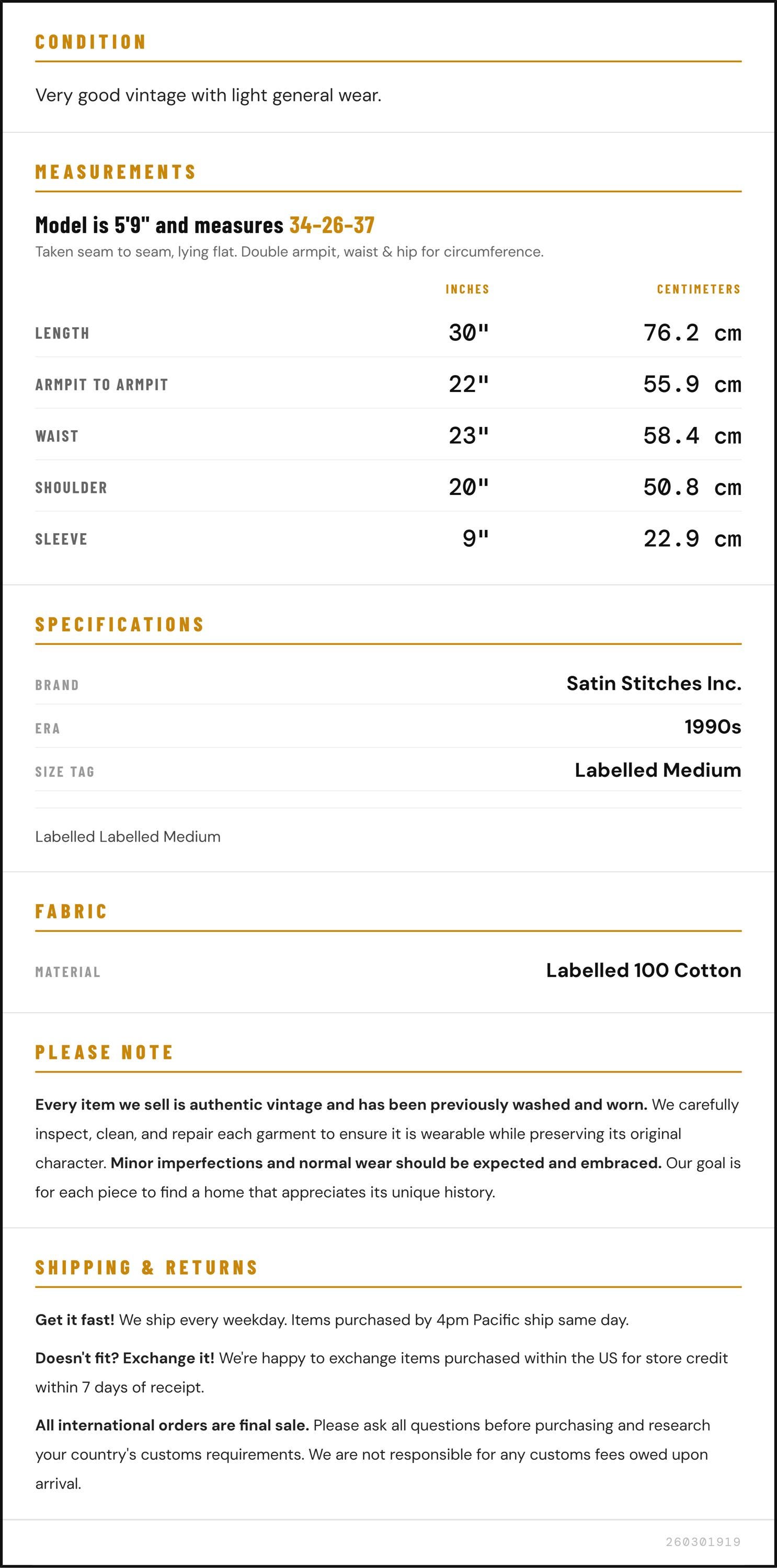 ✨ Please see measurements and condition below. Every garment we sell is authentic vintage and one-of-a-kind! You will receive the exact item photographed.