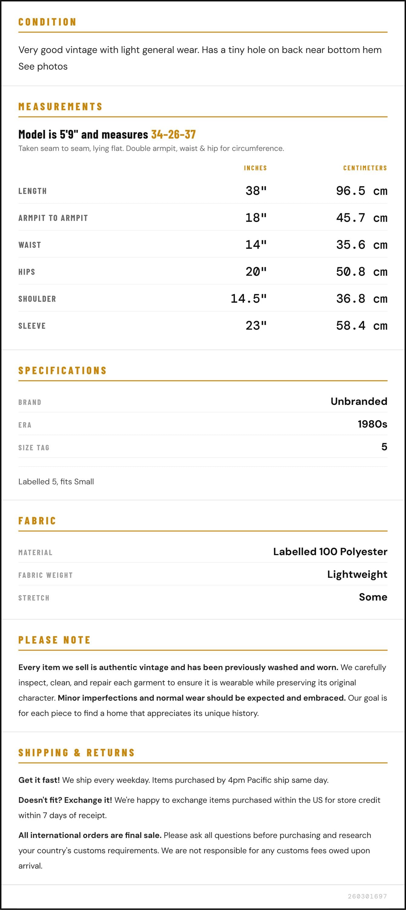 ✨ Please see measurements and condition below. Every garment we sell is authentic vintage and one-of-a-kind! You will receive the exact item photographed.