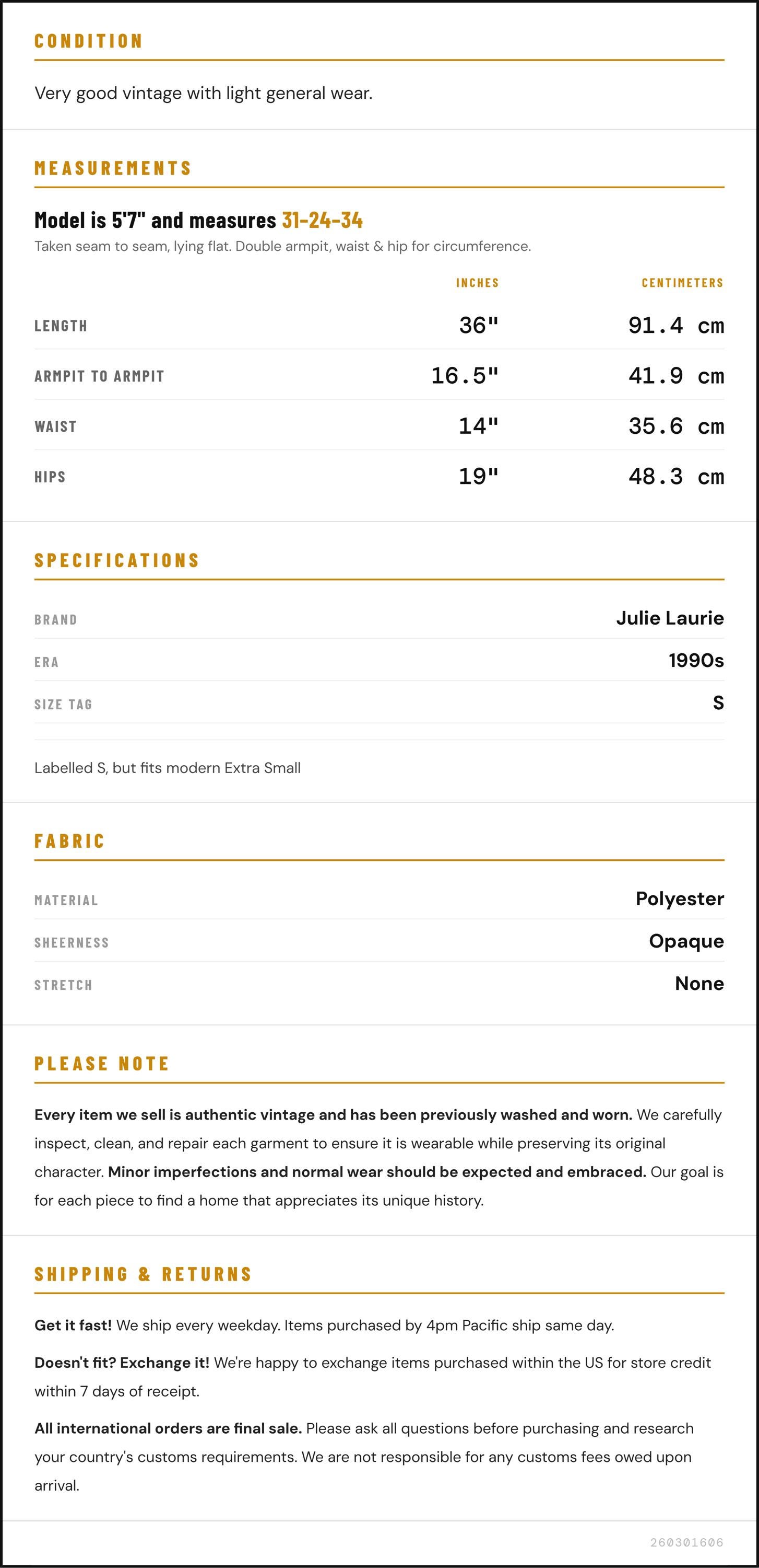 ✨ Please see measurements and condition below. Every garment we sell is authentic vintage and one-of-a-kind! You will receive the exact item photographed.
