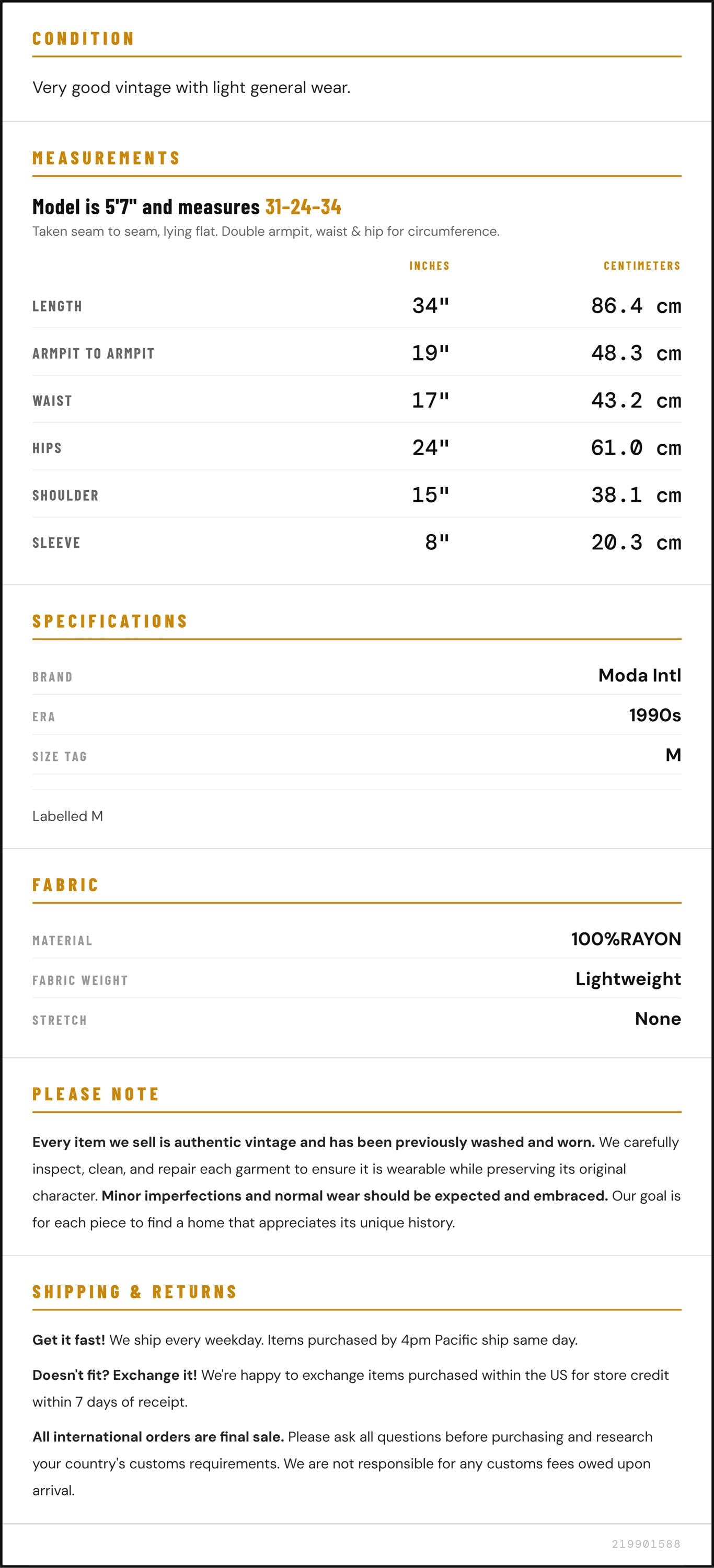 Measurements are taken laying flat and should be doubled where applicable. The "best fits" size is just an estimate, and vintage sizing can vary from modern sizing. Please use measurements to ensure proper fit. The best thing to do is measure a similar item of your own, and compare. When an item has stretch, we will list the unstretched dimensions with the stretched measurement afterwards.