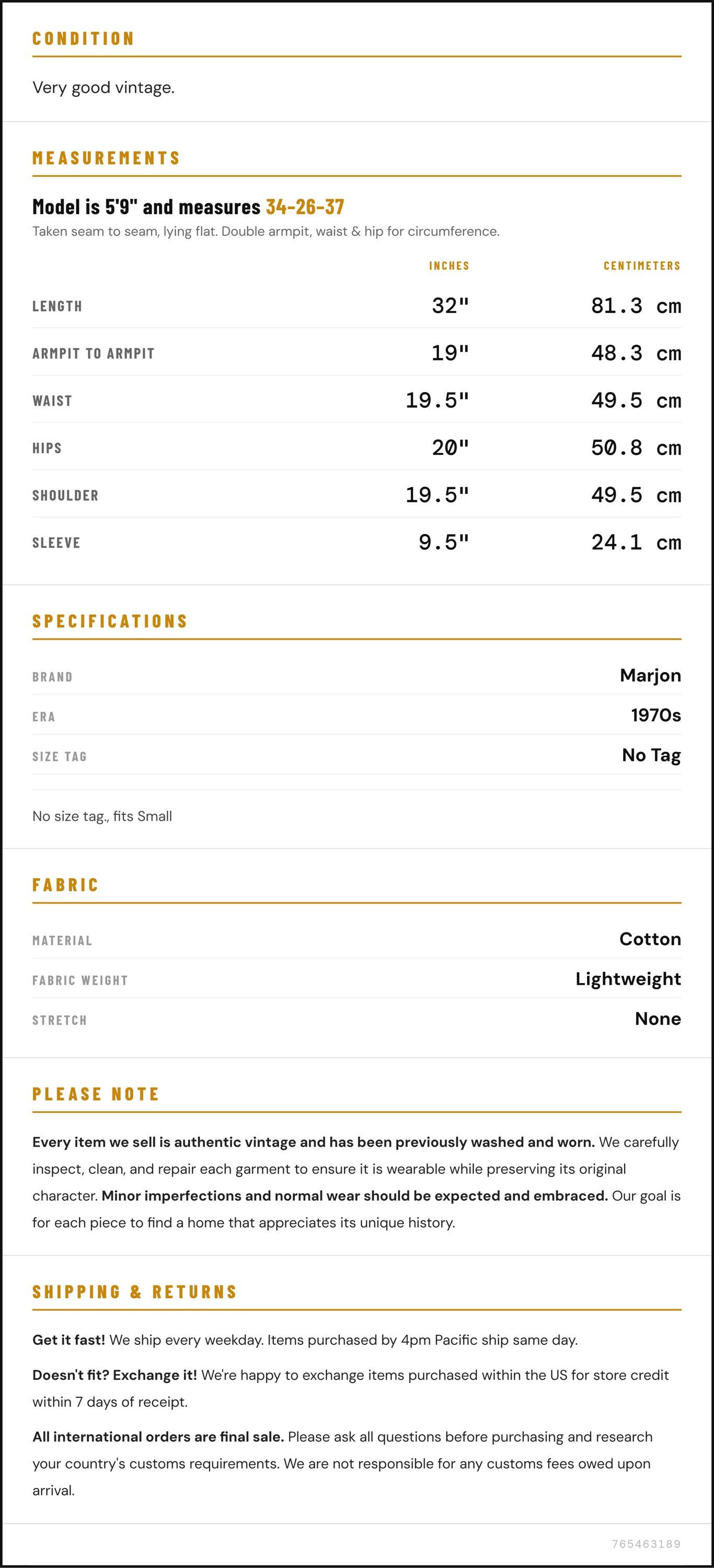 Measurements are taken laying flat and should be doubled where applicable. The "best fits" size is just an estimate, and vintage sizing can vary from modern sizing. Please use measurements to ensure proper fit. The best thing to do is measure a similar item of your own, and compare. When an item has stretch, we will list the unstretched dimensions with the stretched measurement afterwards.