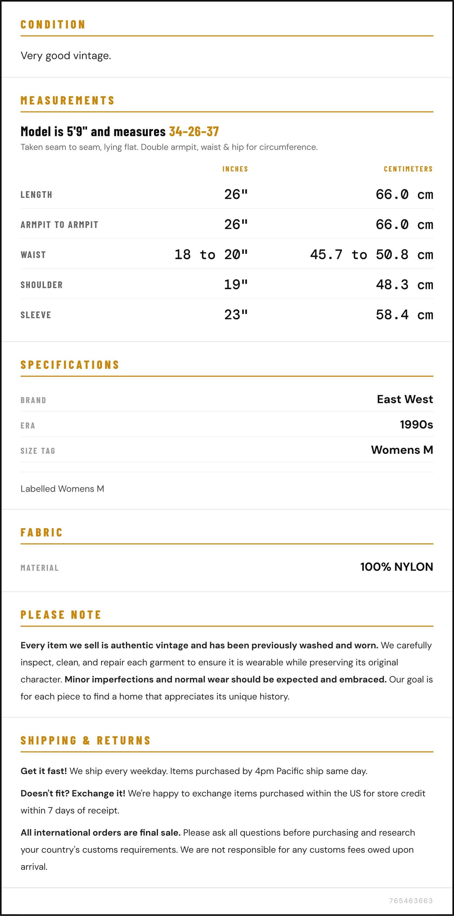 Sleeve: 23" / 58.4 cm