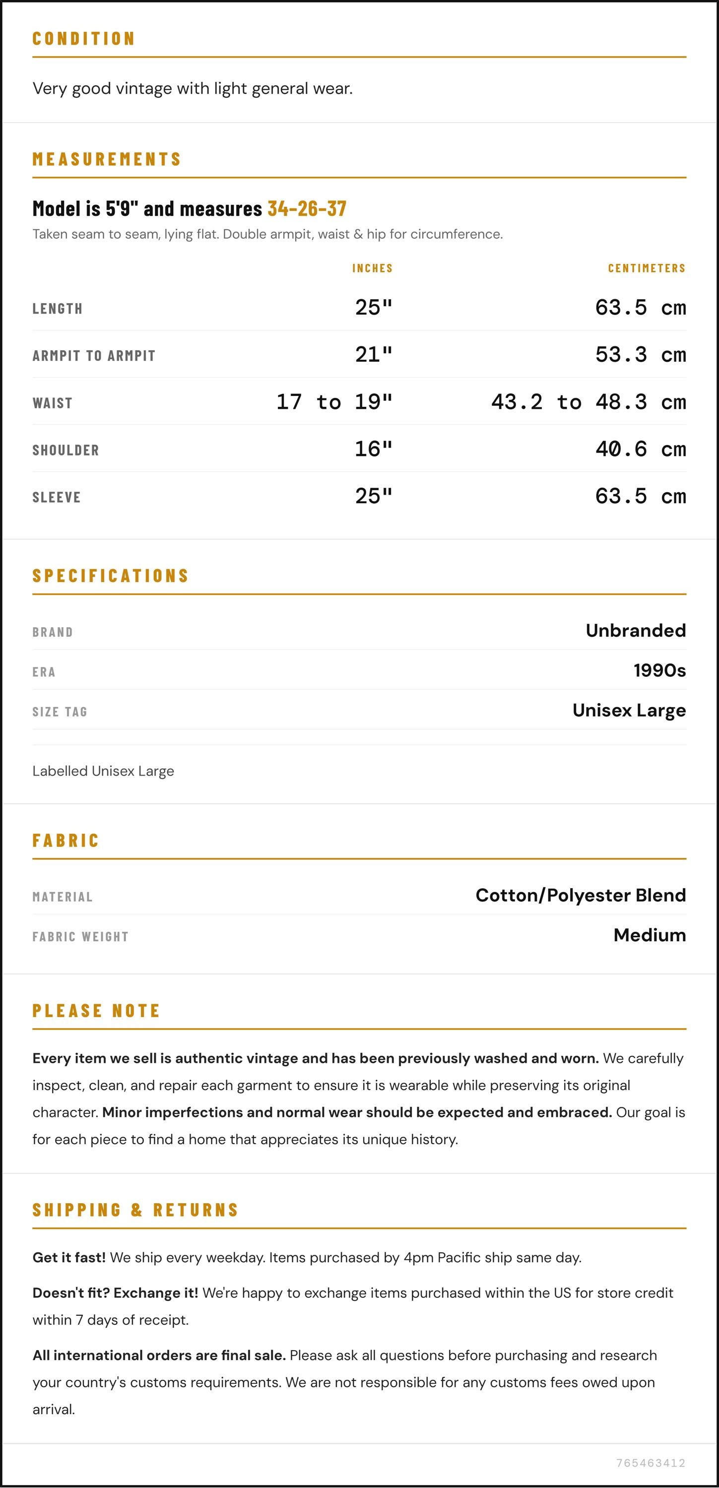✨ Please see measurements and condition below. Every garment we sell is authentic vintage and one-of-a-kind! You will receive the exact item photographed.