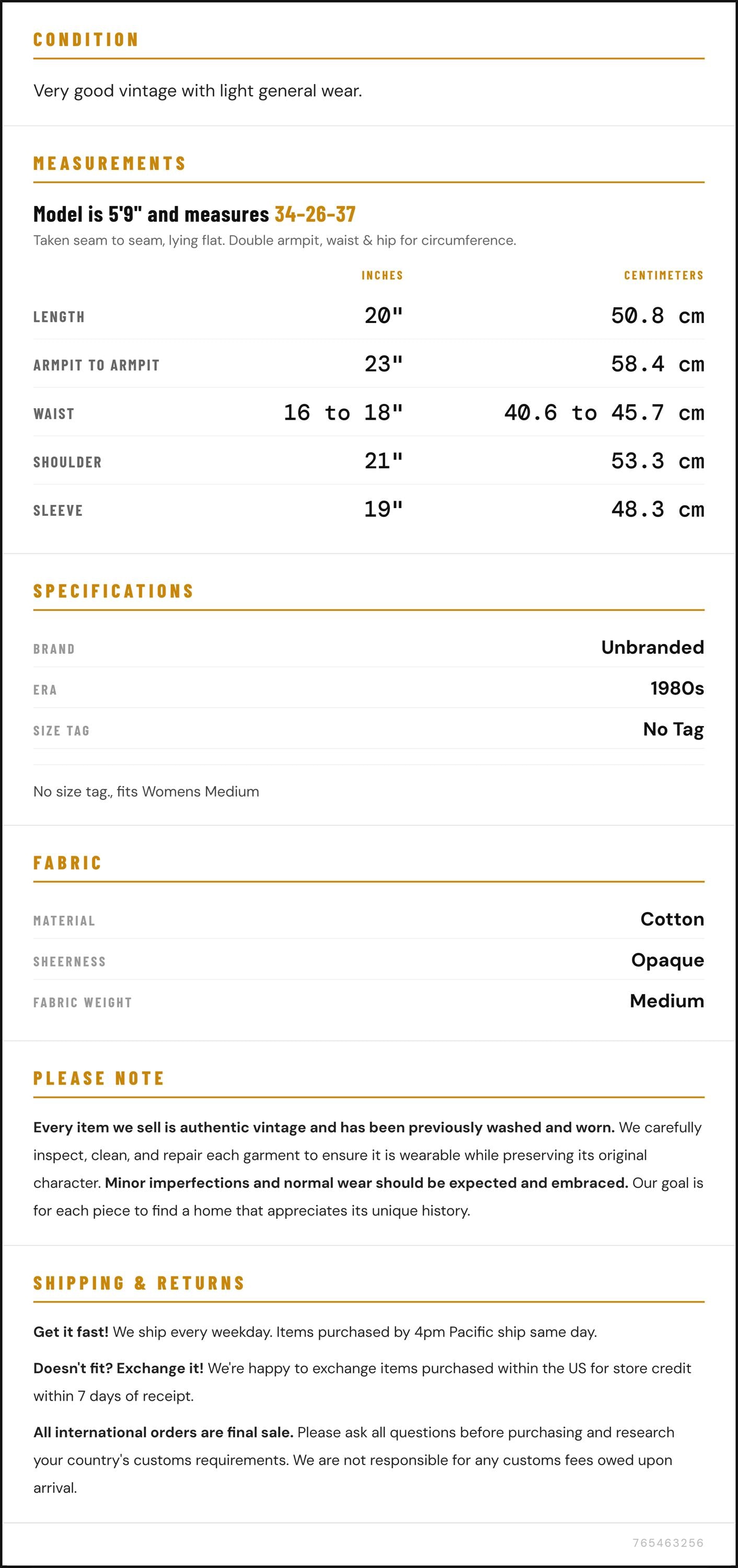 ✨ Please see measurements and condition below. Every garment we sell is authentic vintage and one-of-a-kind! You will receive the exact item photographed.