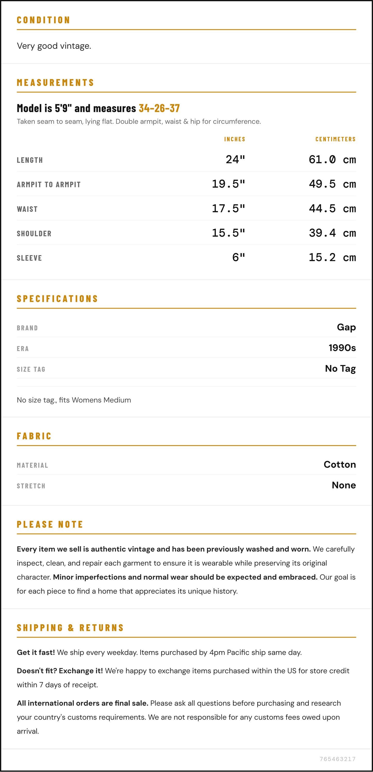 Vintage denim was usually made without any stretch, unlike modern jeans. Check the measurements to ensure proper fit, and remember to give yourself a little wiggle room in the waist and hips, depending on your preferred fit.