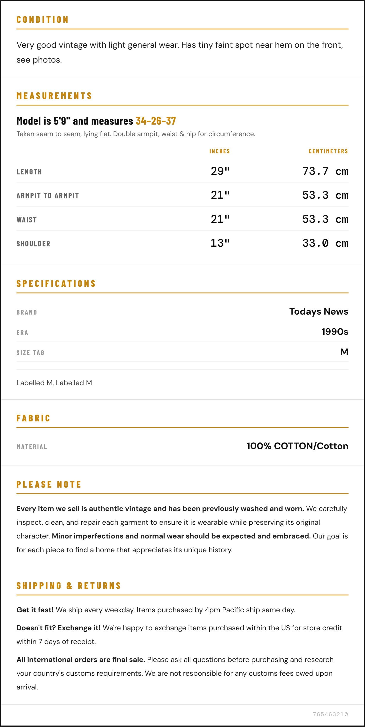 Condition: Very good vintage with light general wear. Has tiny faint spot near hem on the front, see photos.