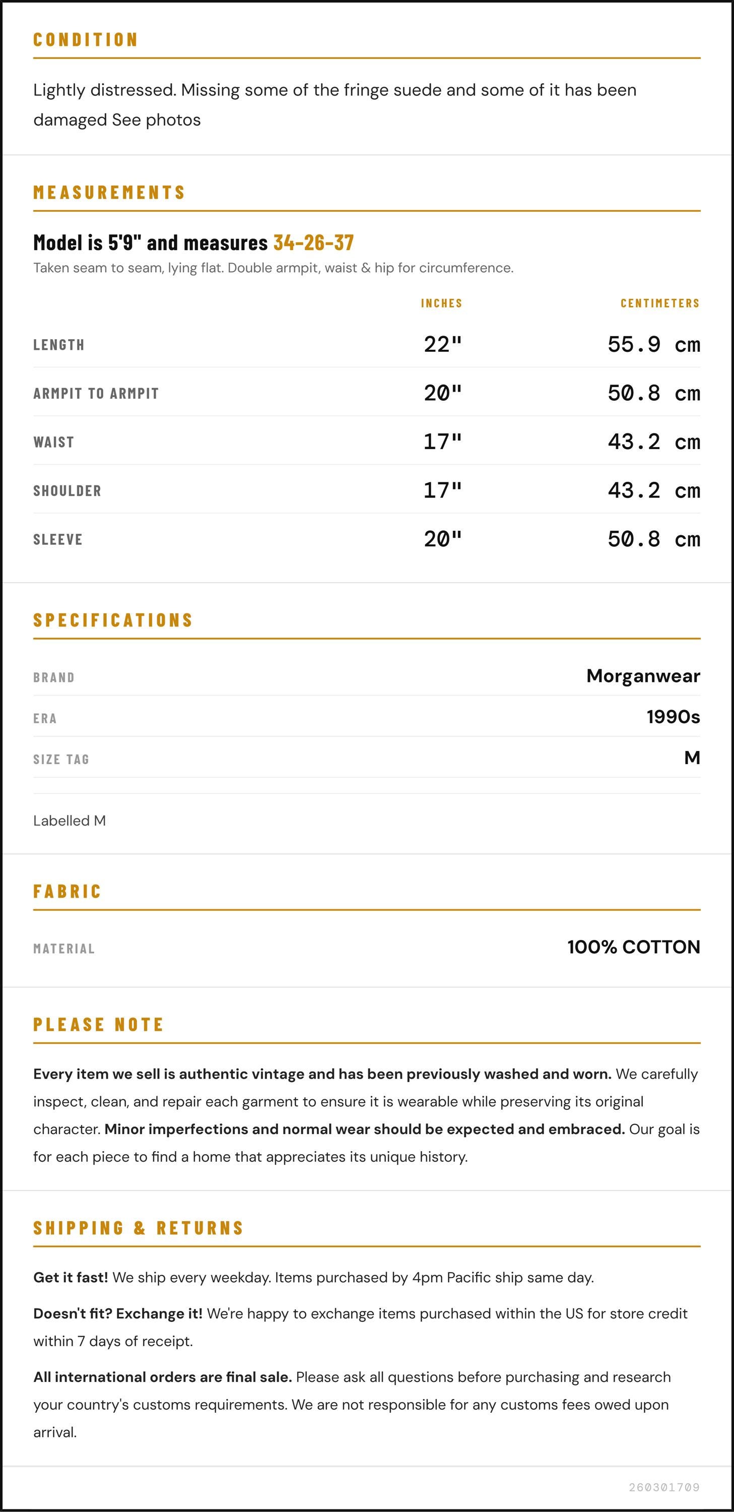 Condition: Lightly distressed. Missing some of the fringe suede and some of it has been damaged See photos