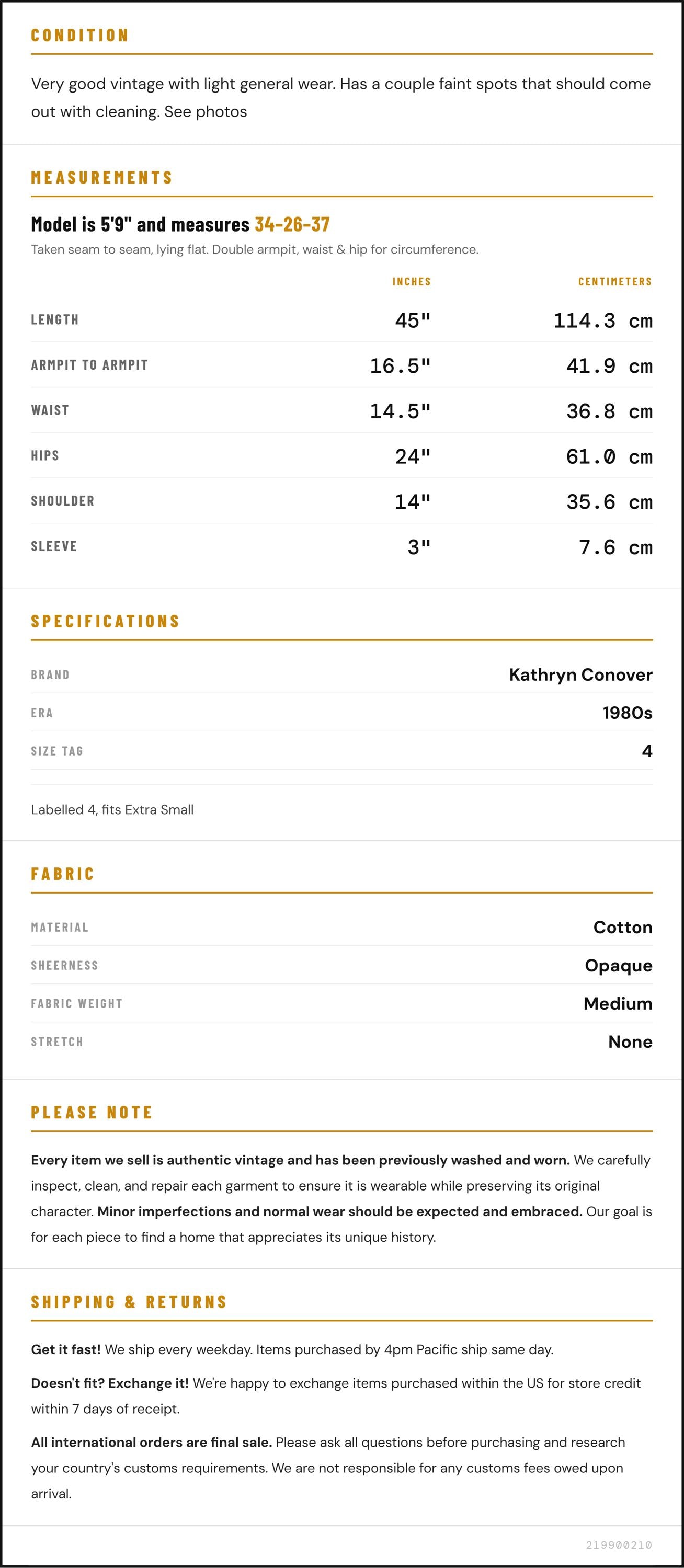 Condition: Very good vintage with light general wear. Has a couple faint spots that should come out with cleaning. See photos