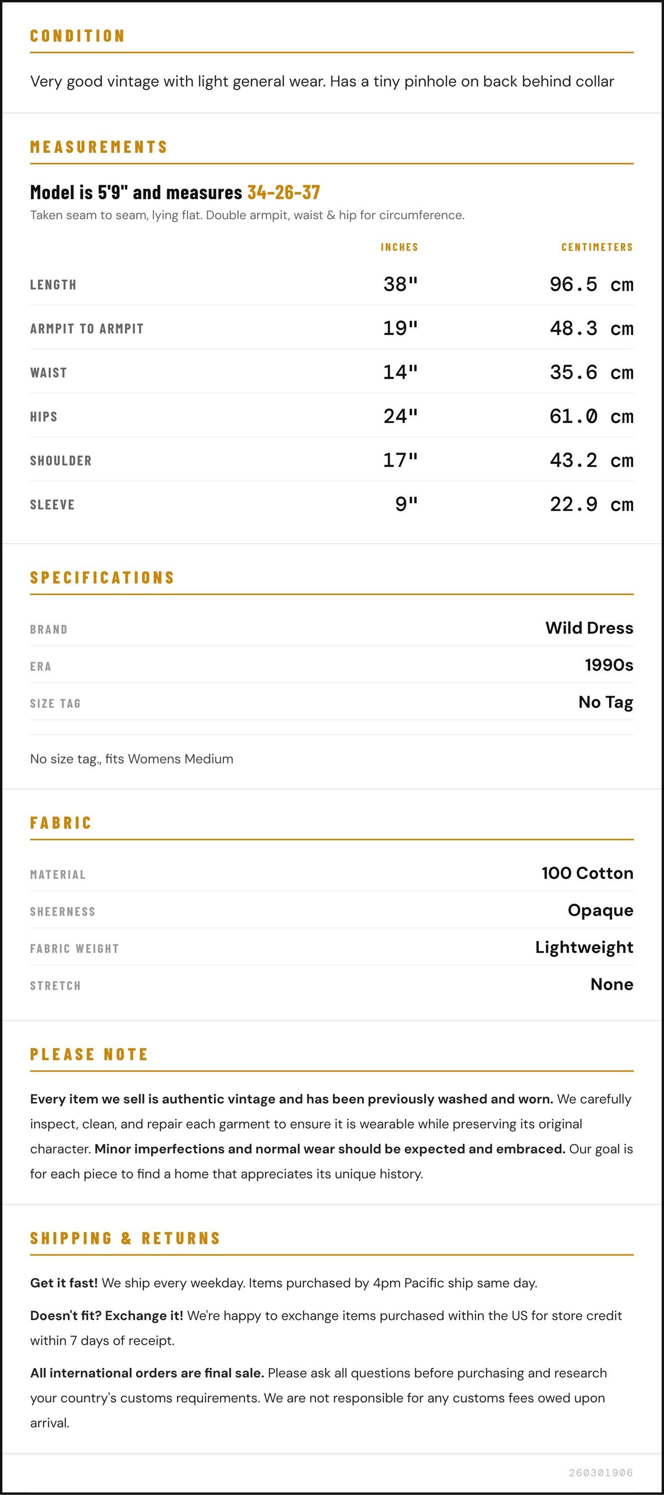 ✨ Please see measurements and condition below. Every garment we sell is authentic vintage and one-of-a-kind! You will receive the exact item photographed.