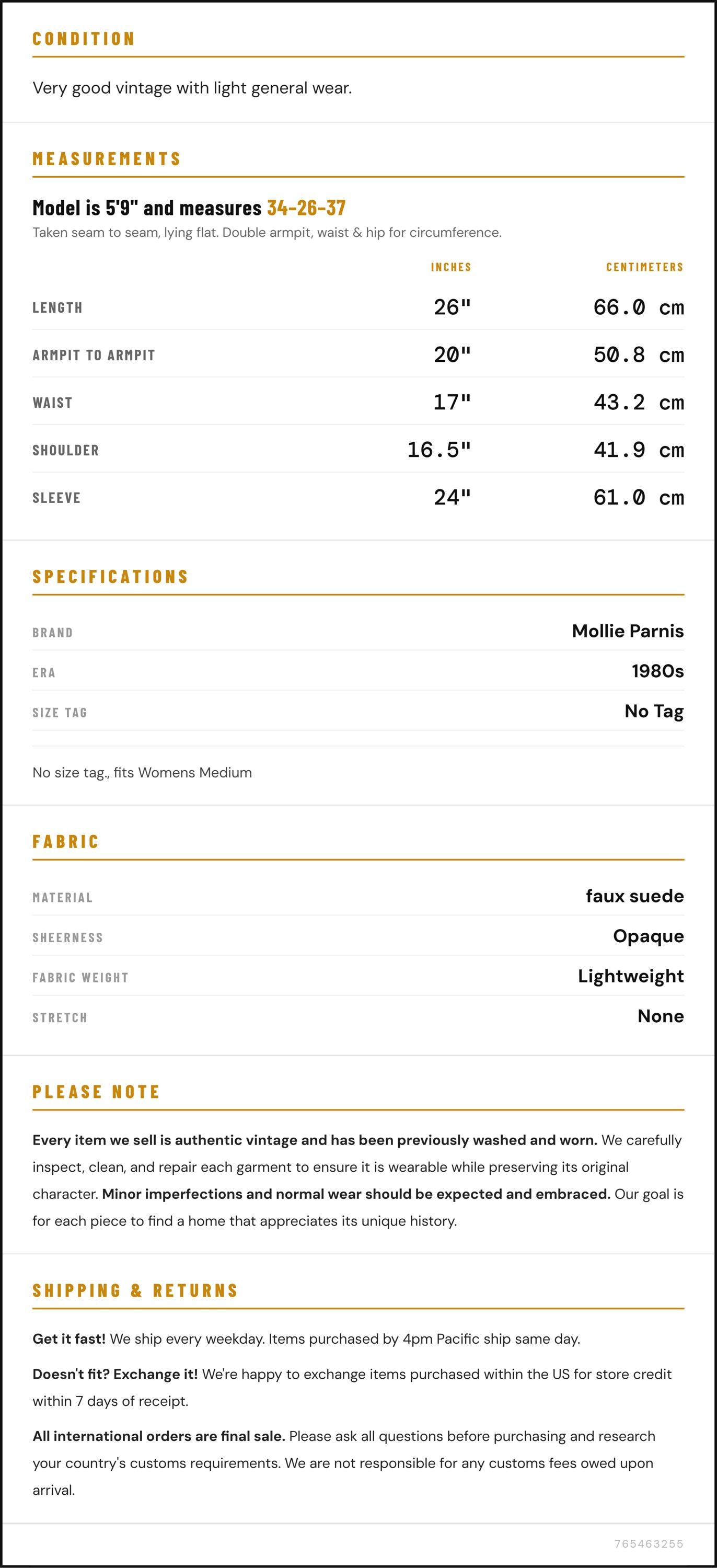 Measurements are taken laying flat and should be doubled where applicable. The "best fits" size is just an estimate, and vintage sizing can vary from modern sizing. Please use measurements to ensure proper fit. The best thing to do is measure a similar item of your own, and compare. When an item has stretch, we will list the unstretched dimensions with the stretched measurement afterwards.