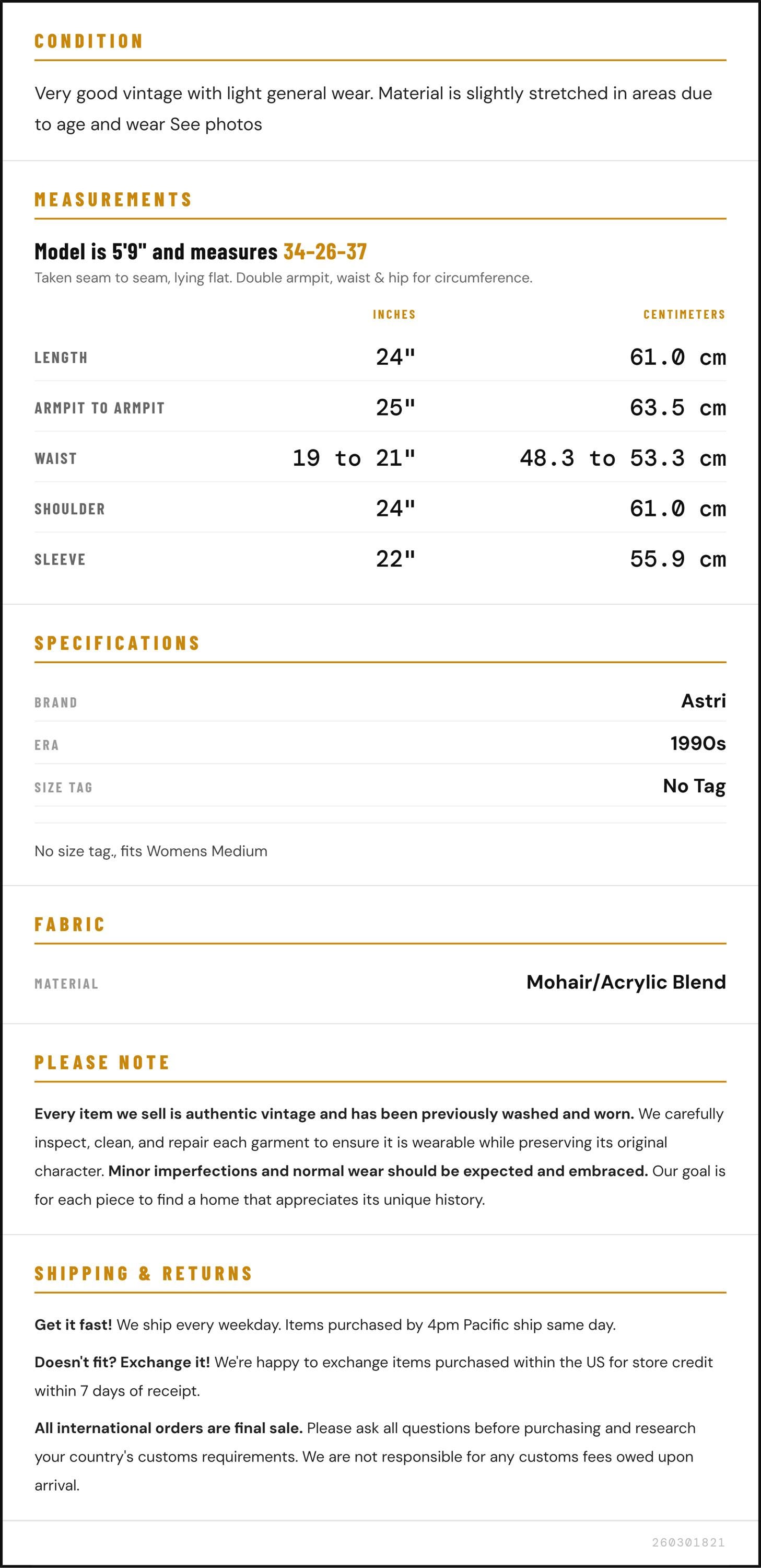 ✨ Please see measurements and condition below. Every garment we sell is authentic vintage and one-of-a-kind! You will receive the exact item photographed.