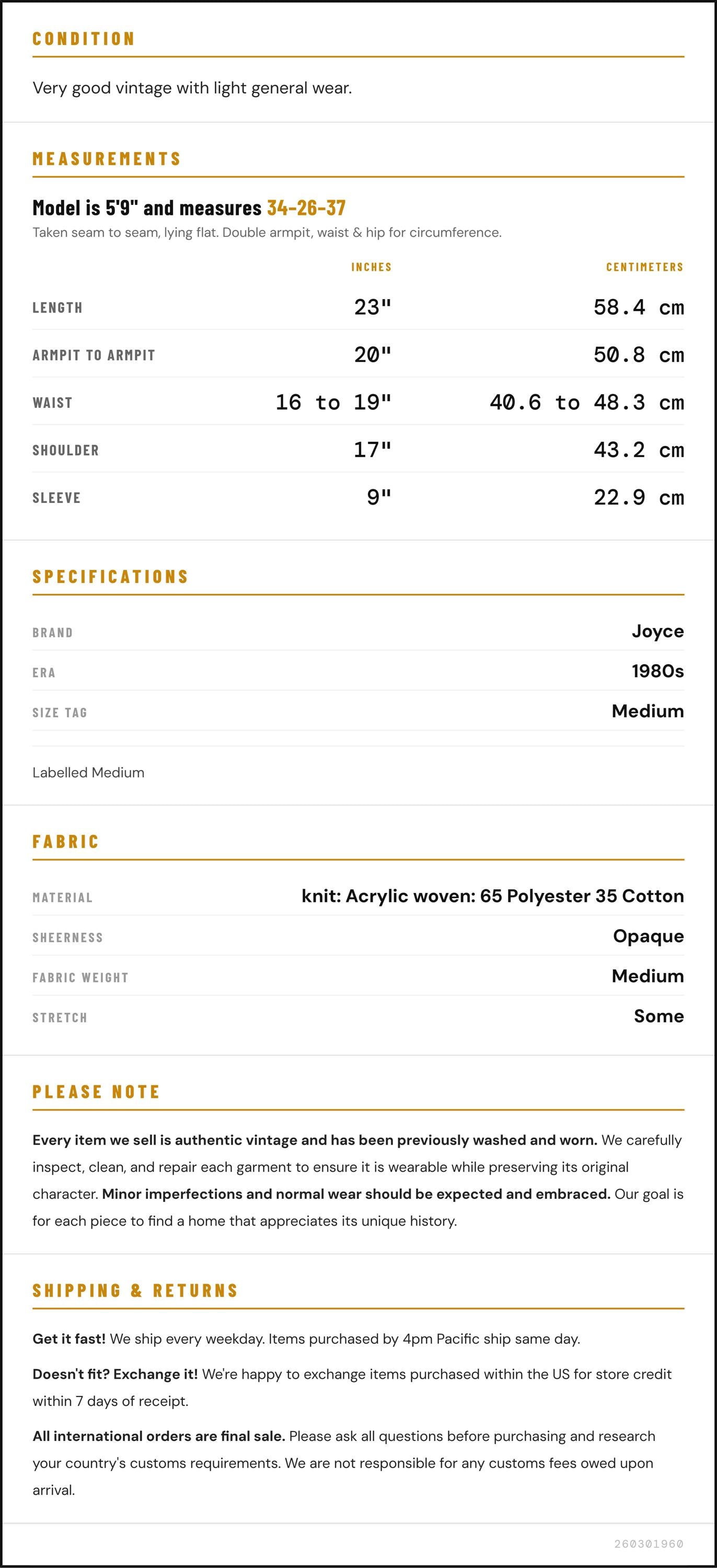 ✨ Please see measurements and condition below. Every garment we sell is authentic vintage and one-of-a-kind! You will receive the exact item photographed.