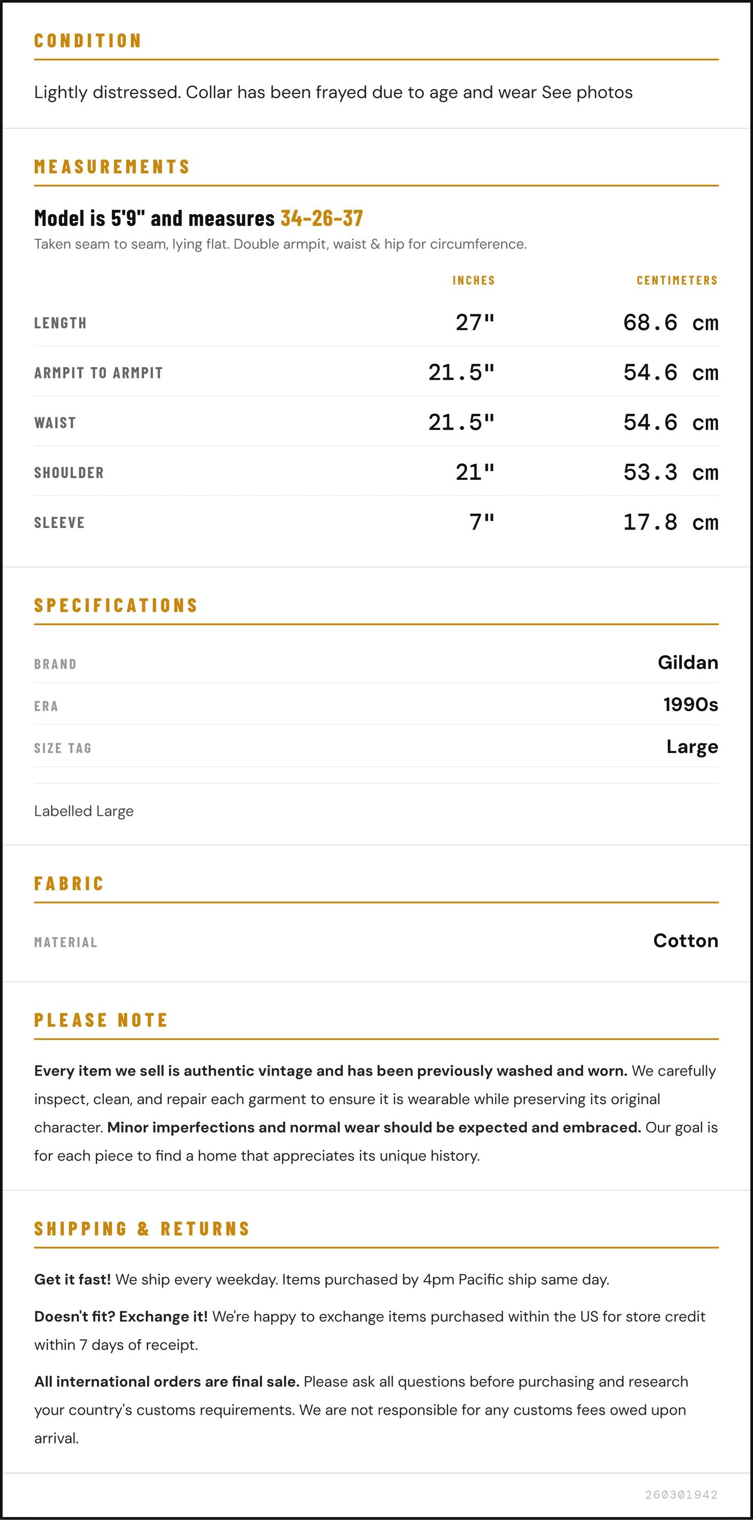 Doesn't fit? Exchange it! We're happy to exchange items purchased within the US for store credit within 7 days of receipt.