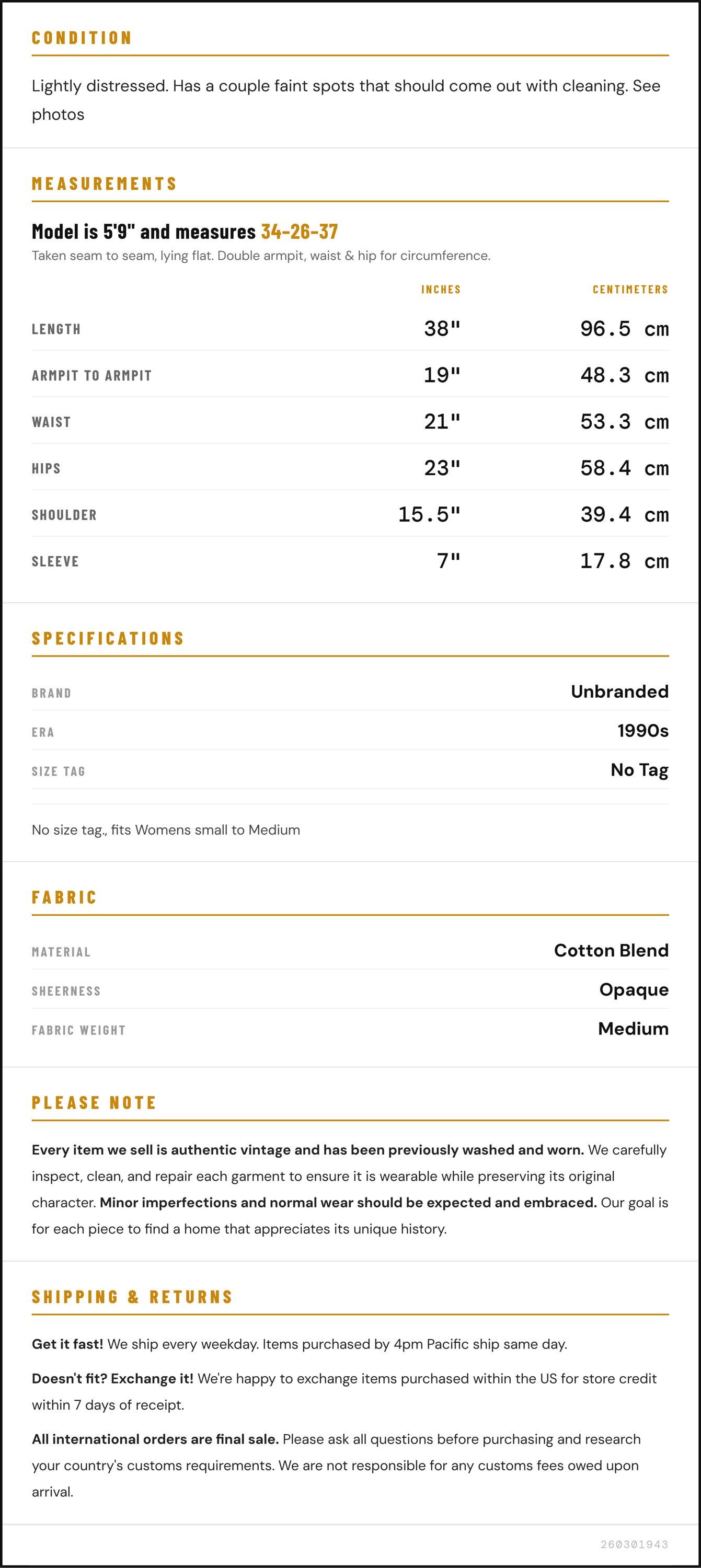 ✨ Please see measurements and condition below. Every garment we sell is authentic vintage and one-of-a-kind! You will receive the exact item photographed.