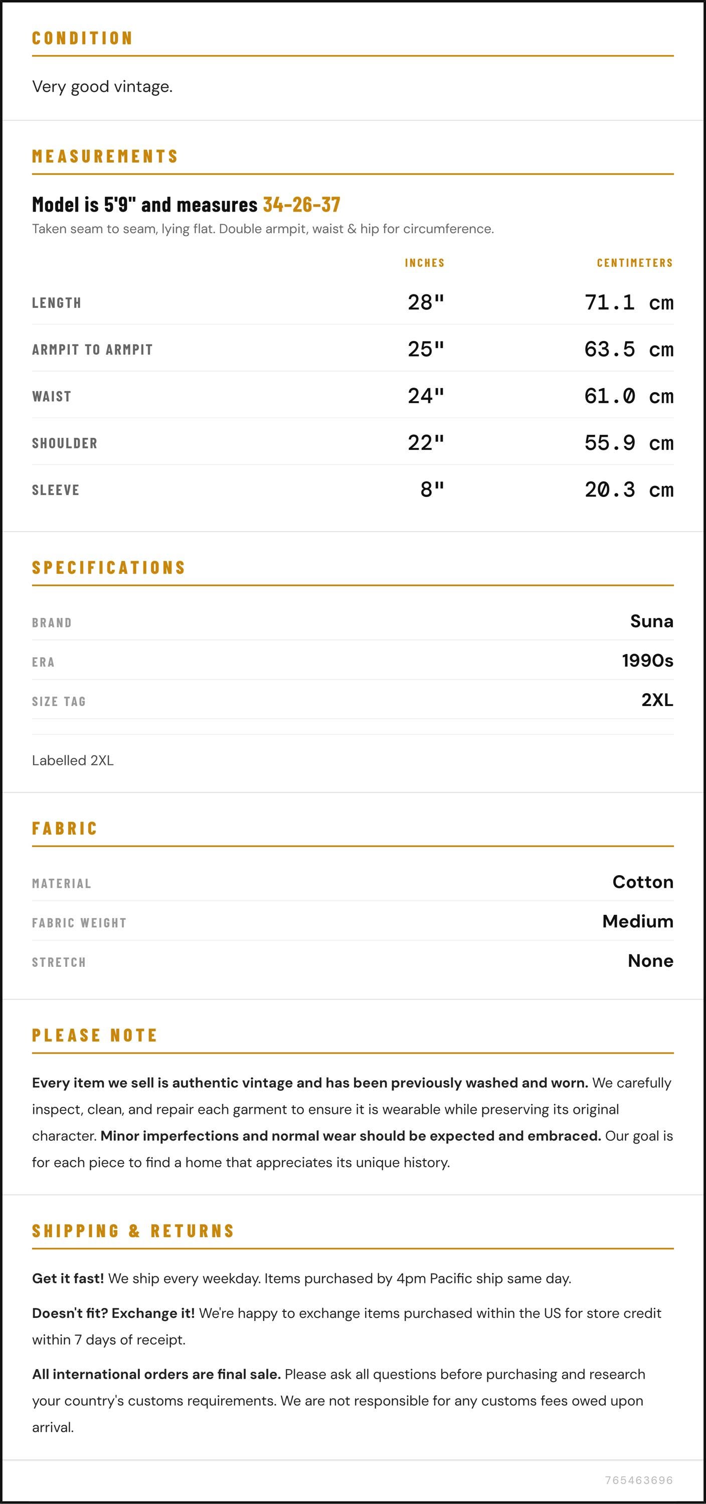 Taken from seam to seam while the garment is lying flat. Double the armpit, waist, and hip measurements.