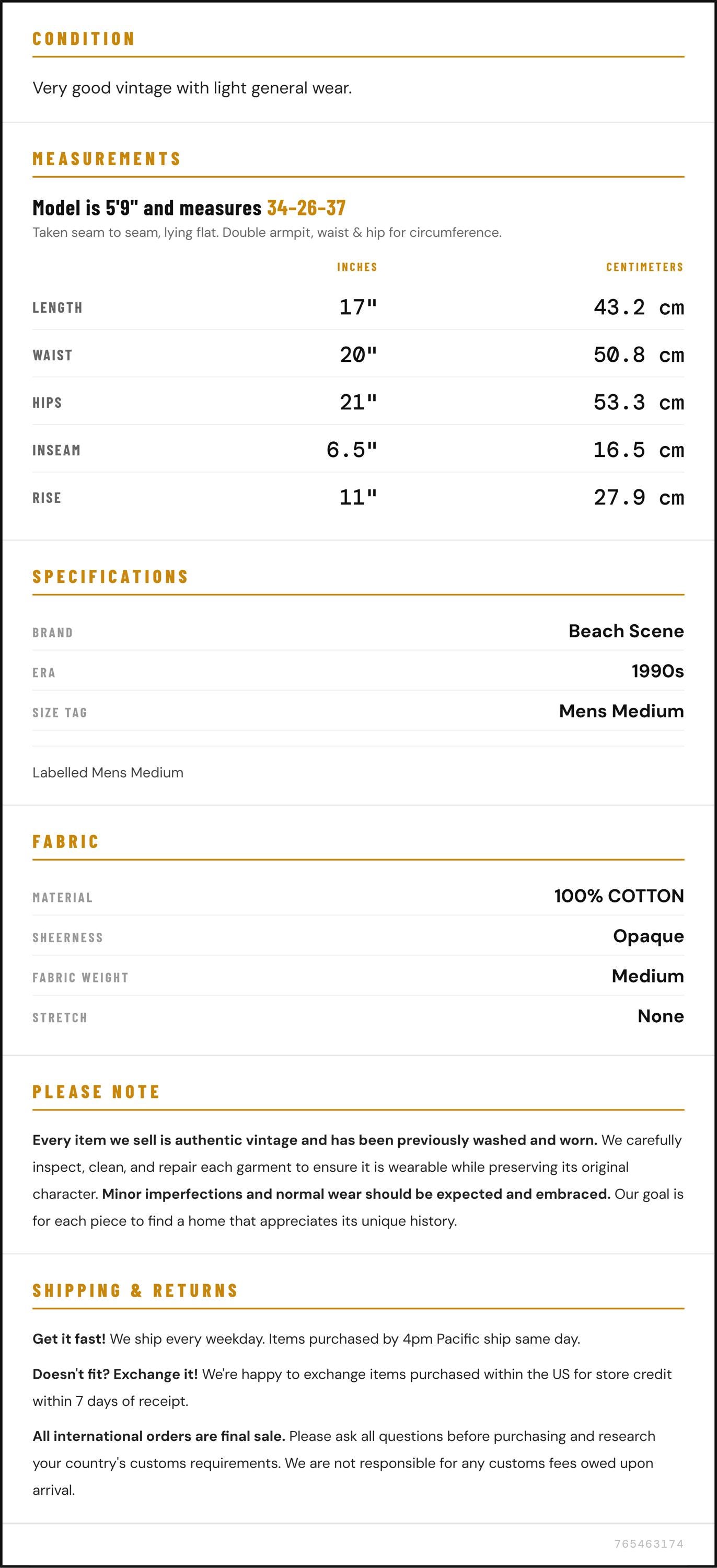 Inseam: 6.5" / 16.5 cm