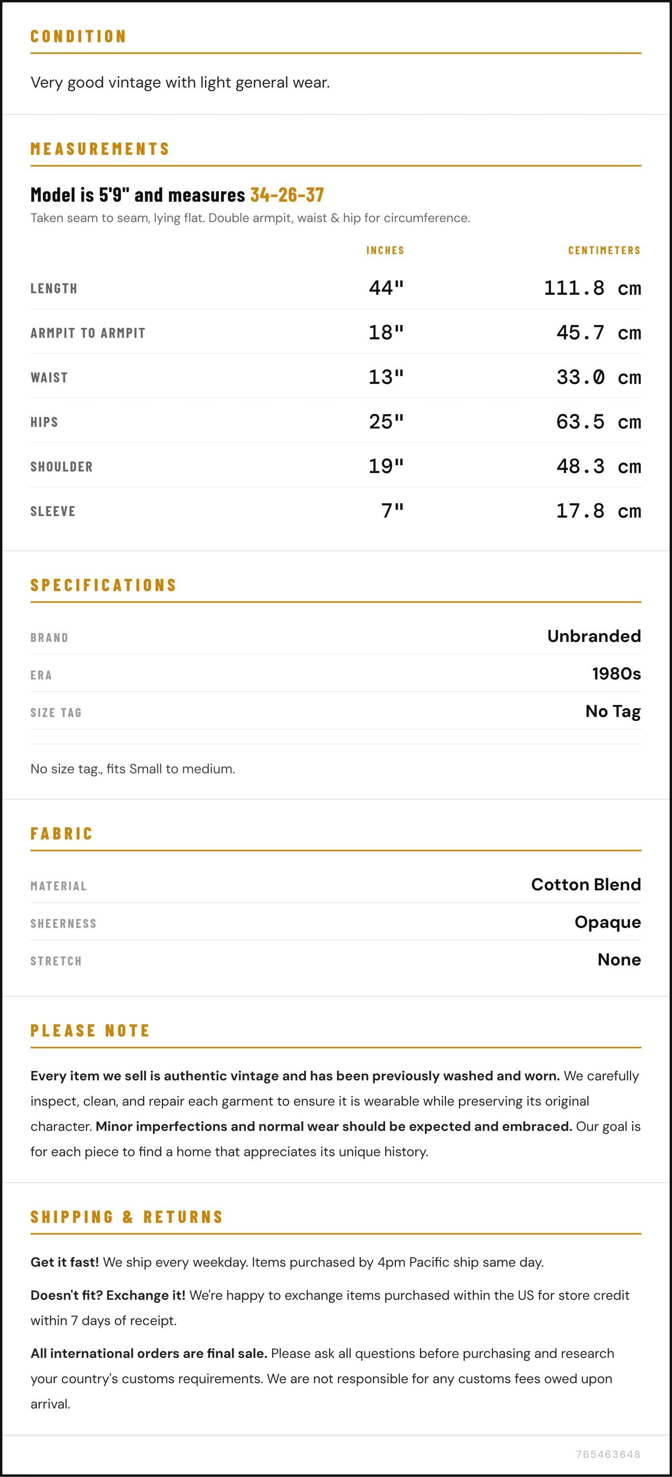 ✨ Please see measurements and condition below. Every garment we sell is authentic vintage and one-of-a-kind! You will receive the exact item photographed.