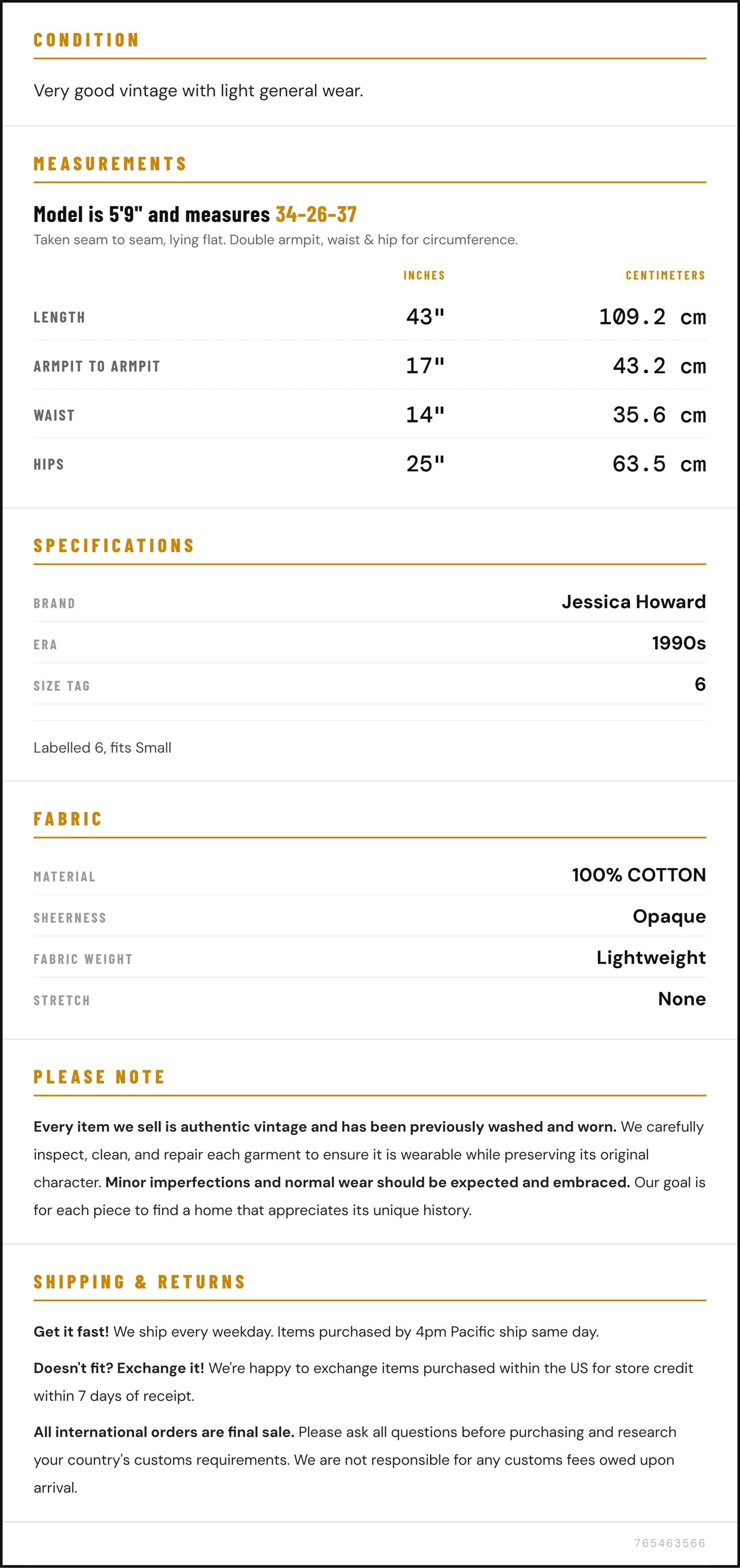 Vintage denim was usually made without any stretch, unlike modern jeans. Check the measurements to ensure proper fit, and remember to give yourself a little wiggle room in the waist and hips, depending on your preferred fit.
