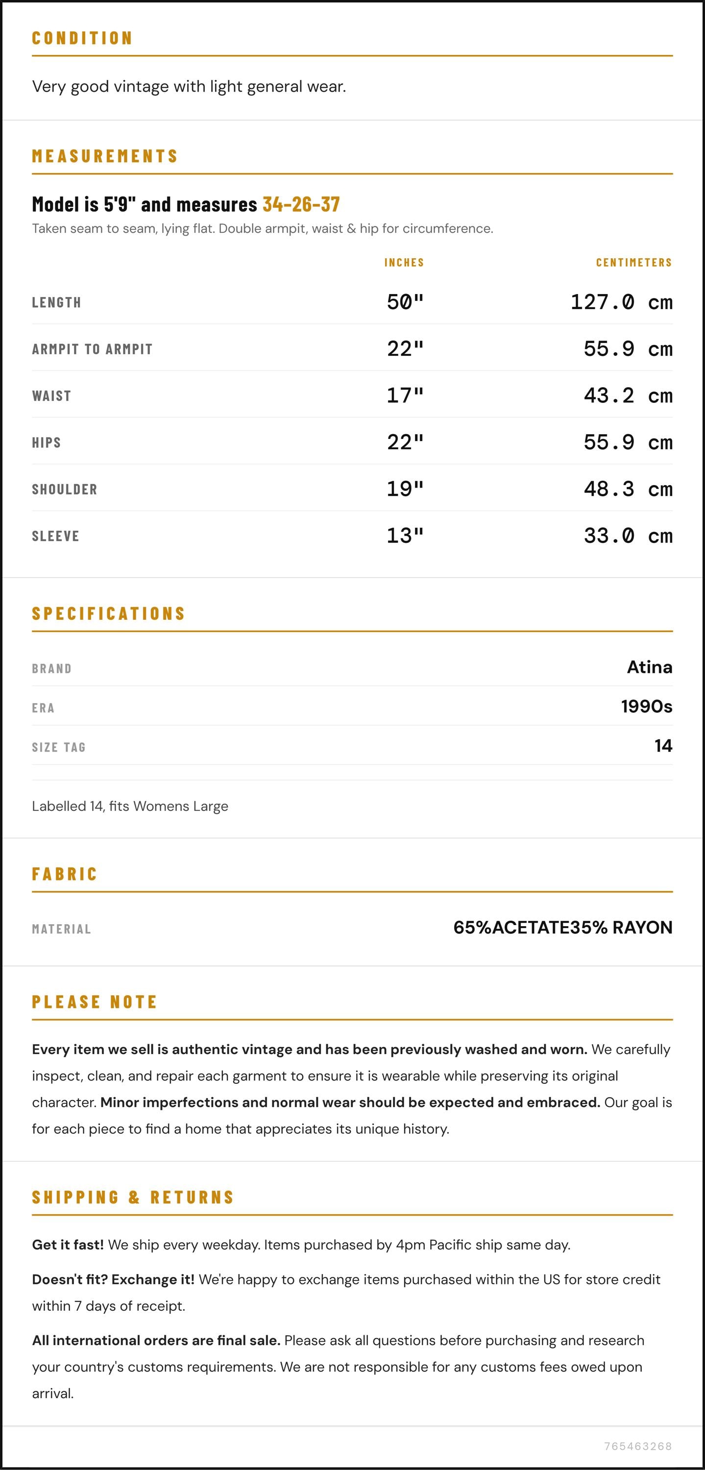 All international orders are final sale. Please ask all questions before purchasing and research your country's customs requirements. We are not responsible for any customs fees owed upon arrival.