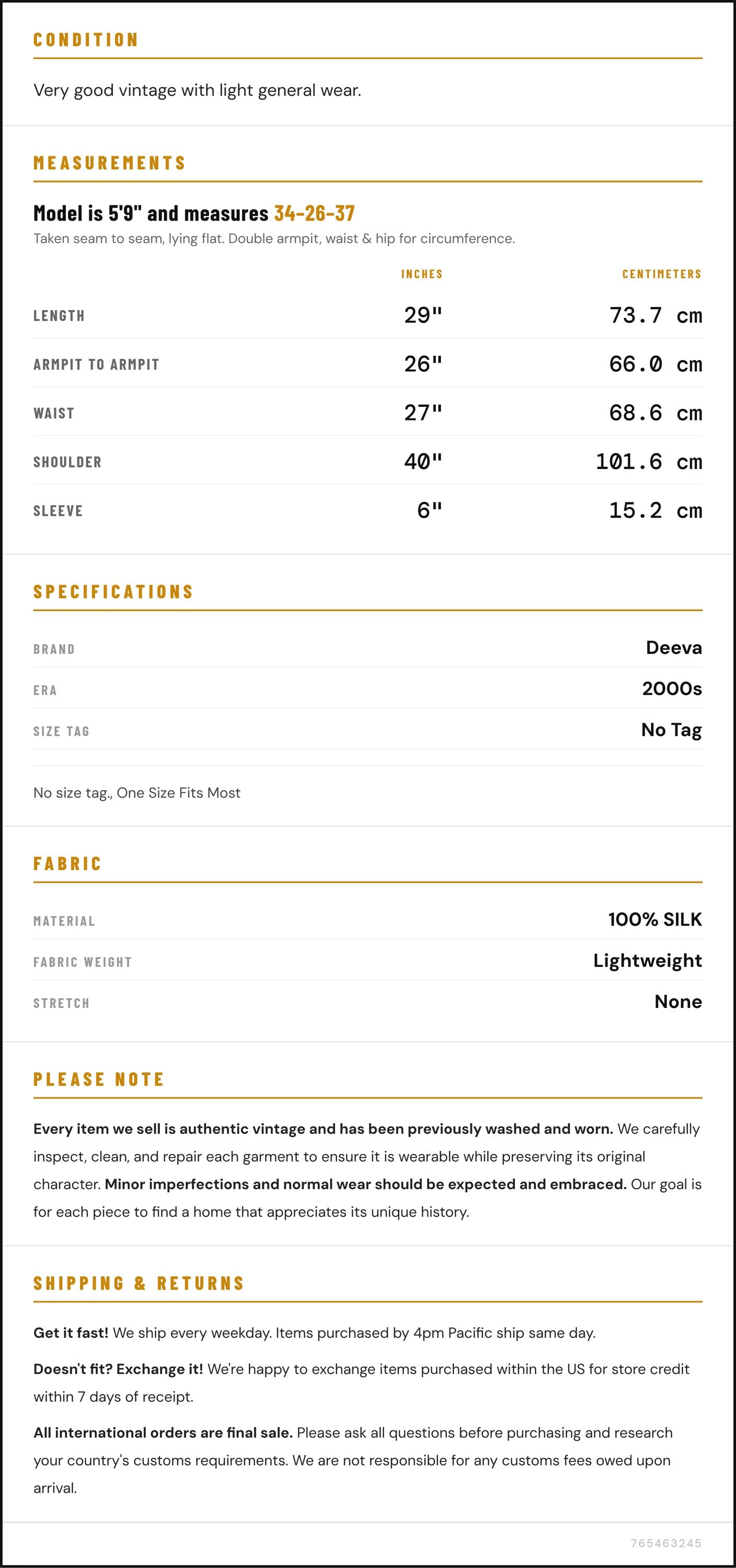 All international orders are final sale. Please ask all questions before purchasing and research your country's customs requirements. We are not responsible for any customs fees owed upon arrival.