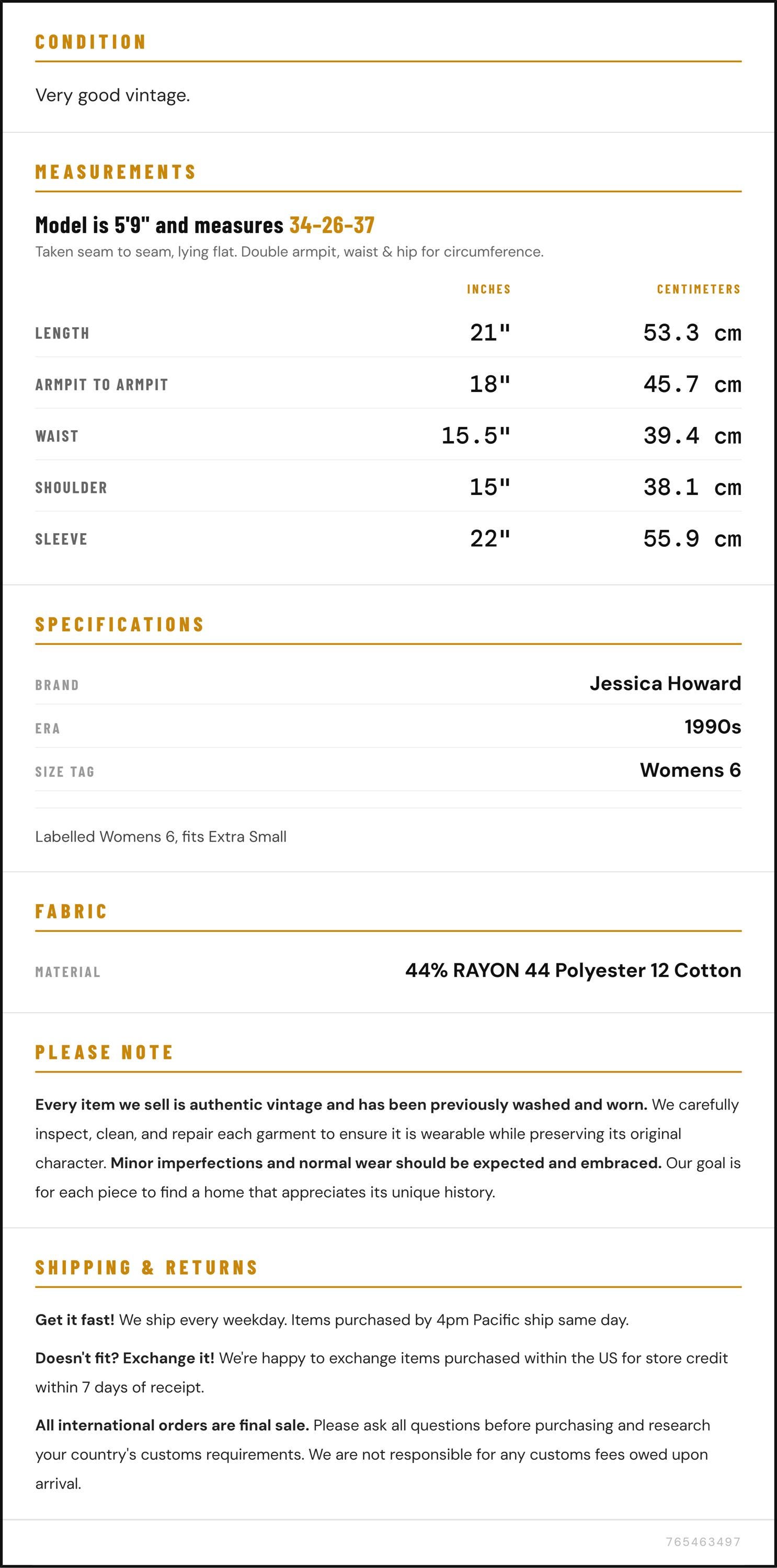 ✨ Please see measurements and condition below. Every garment we sell is authentic vintage and one-of-a-kind! You will receive the exact item photographed.